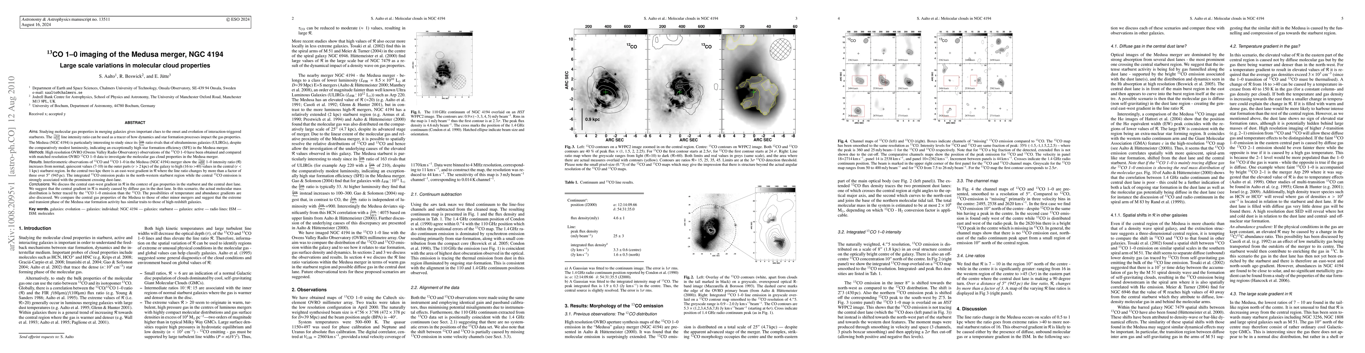 Studying molecular gas properties in merging galaxies gives important clues to the onset and evolution of interaction-triggered starbursts. The CO/13CO 1-0 line intensity ratio can be used as a tracer of how dynamics and star formation processes impact the gas properties. The Medusa (NGC~4194) merger is particularly interesting to study since its LFIR/LCO ratio rivals that of ultraluminous galaxies (ULIRGs), despite the comparatively modest luminosity, indicating an exceptionally high star formation efficiency (SFE) in the Medusa merger. Interferometric OVRO observations of CO and 13CO 1-0 in the Medusa show the CO/13CO intensity ratio increases from normal, quiescent values (7-10) in the outer parts (r>2 kpc) of the galaxy to high (16 to >40) values in the central (r<1 kpc) starburst region. In the centre there is an east-west gradient where the line ratio changes by more than a factor of three over 5" (945 pc). The integrated 13CO emission peaks in the north-western starburst region while the central CO emission is strongly associated with the prominent crossing dust-lane. We discuss the central east-west gradient in the context of gas properties in the starburst and the central dust lane. We suggest that the central gradient is mainly caused by diffuse gas in the dust lane. In this scenario, the actual molecular mass distribution is better traced by the 13CO 1-0 emission than the CO. The possibilities of temperature and abundance gradients are also discussed. We compare the central gas properties of the Medusa to those of other minor mergers and suggest that the extreme and transient phase of the Medusa star formation activity has similar traits to those of high-redshift galaxies.