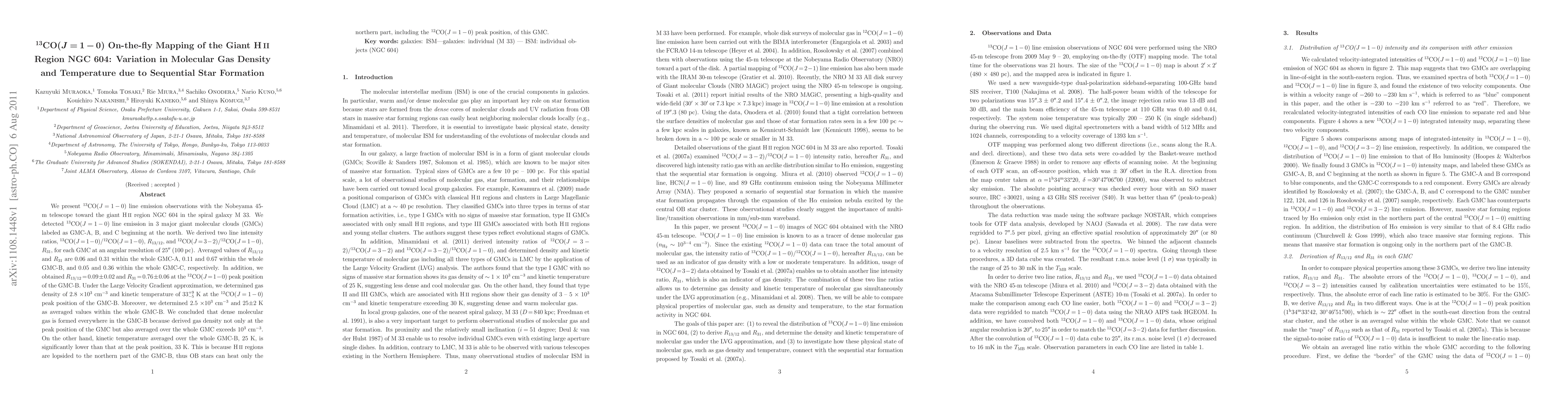 This study uses 13CO(J=1-0) observations to map the giant HII region NGC 604 in M 33, revealing variations in molecular gas density and temperature across three major molecular clouds. The derived gas densities and temperatures indicate sequential star formation effects, with dense gas forming throughout GMC-B and higher temperatures at the peak position due to localized heating by OB stars.