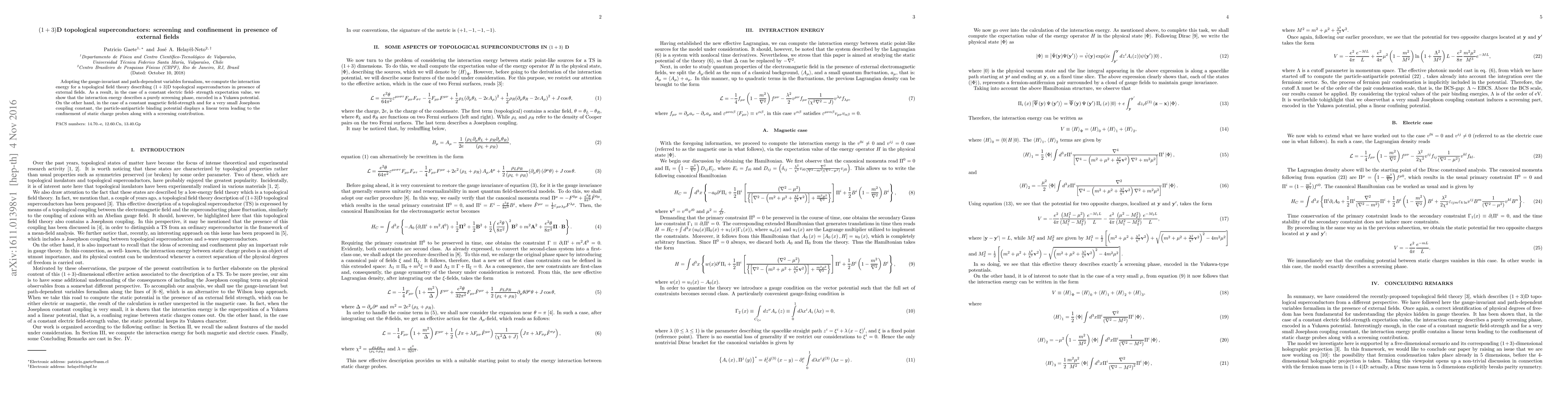 This paper investigates the interaction energy in $(1+3)$D topological superconductors under external fields, revealing a screening phase in constant electric fields and confinement of static charge in constant magnetic fields with a small Josephson coupling, both encoded in Yukawa and linear potentials respectively.