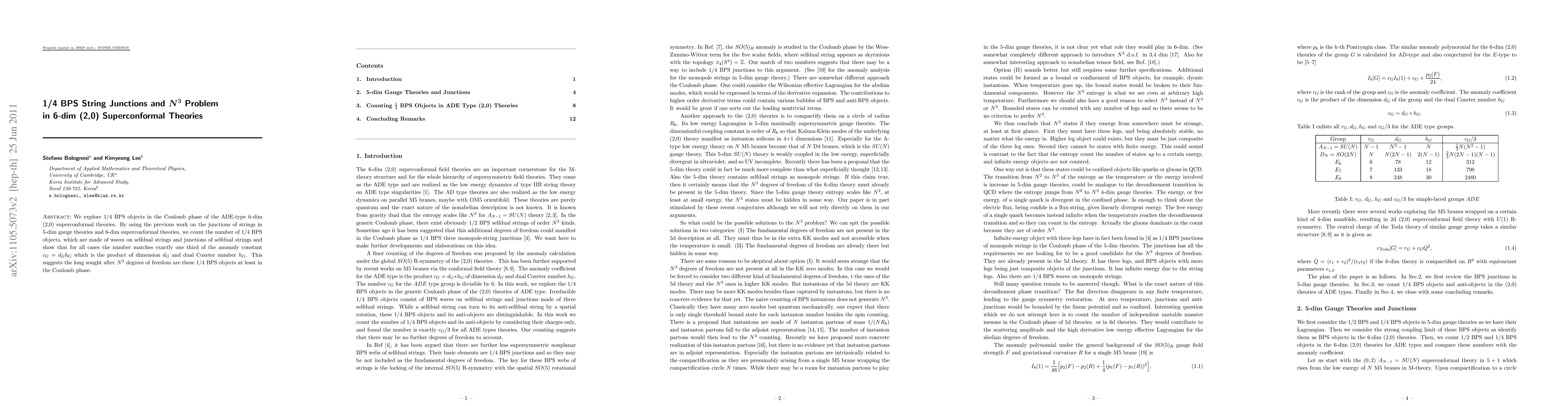 This research examines 1/4 BPS objects in 6-dimensional (2,0) superconformal theories, showing that junctions of selfdual strings count to one third of the anomaly constant. It suggests these objects may represent the elusive $N^3$ degrees of freedom in the Coulomb phase.