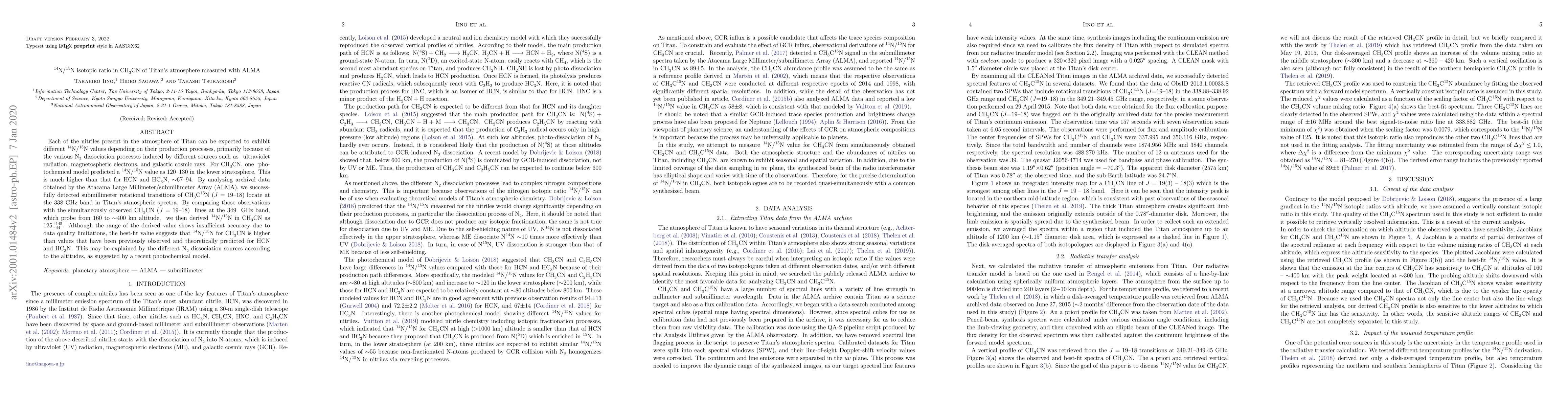 Researchers used ALMA to detect CH3CN's 14N/15N ratio in Titan's atmosphere, finding a value higher than previously predicted for HCN and HC3N.