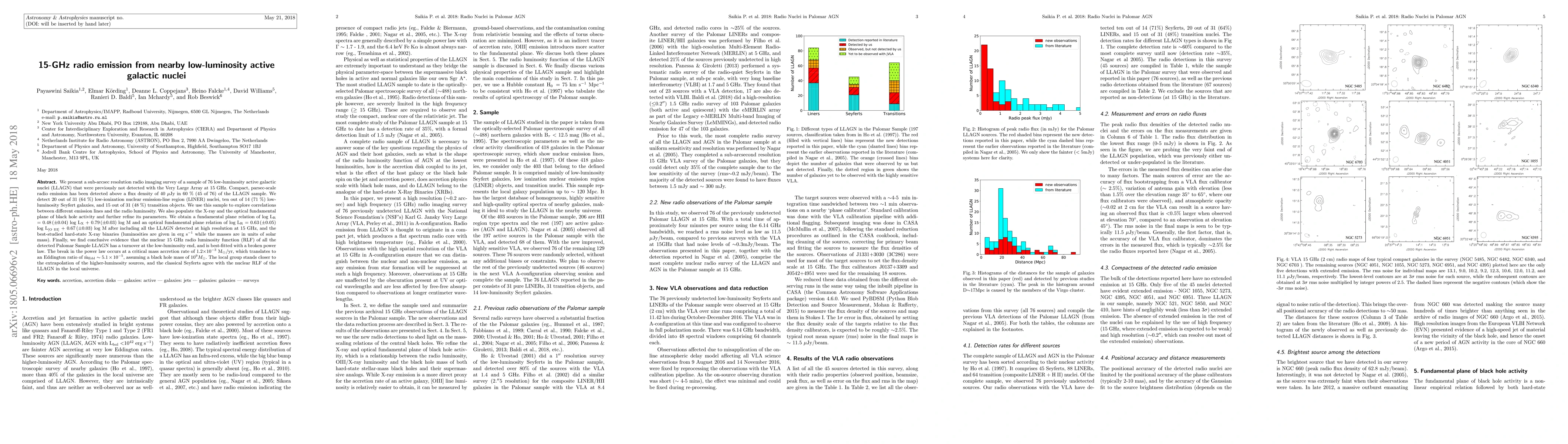 This study presents a high-resolution radio imaging survey of 76 low-luminosity active galactic nuclei (LLAGN), detecting compact radio emissions in 60% of the sample. The findings refine the X-ray and optical fundamental planes of black hole activity, revealing a turnover in the nuclear 15 GHz radio luminosity function at a low-luminosity end.
