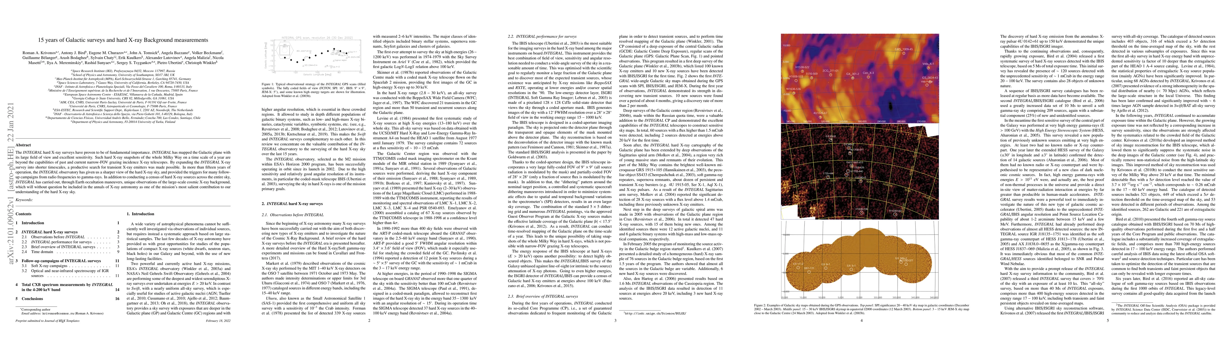 The INTEGRAL hard X-ray surveys have proven to be of fundamental importance. INTEGRAL has mapped the Galactic plane with its large field of view and excellent sensitivity. Such hard X-ray snapshots of the whole Milky Way on a time scale of a year are beyond the capabilities of past and current narrow-FOV grazing incidence X-ray telescopes. By expanding the INTEGRAL X-ray survey into shorter timescales, a productive search for transient X-ray emitters was made possible. In more than fifteen years of operation, the INTEGRAL observatory has given us a sharper view of the hard X-ray sky, and provided the triggers for many follow-up campaigns from radio frequencies to gamma-rays. In addition to conducting a census of hard X-ray sources across the entire sky, INTEGRAL has carried out, through Earth occultation maneuvers, unique observations of the large-scale cosmic X-ray background, which will without question be included in the annals of X-ray astronomy as one of the mission's most salient contribution to our understanding of the hard X-ray sky.