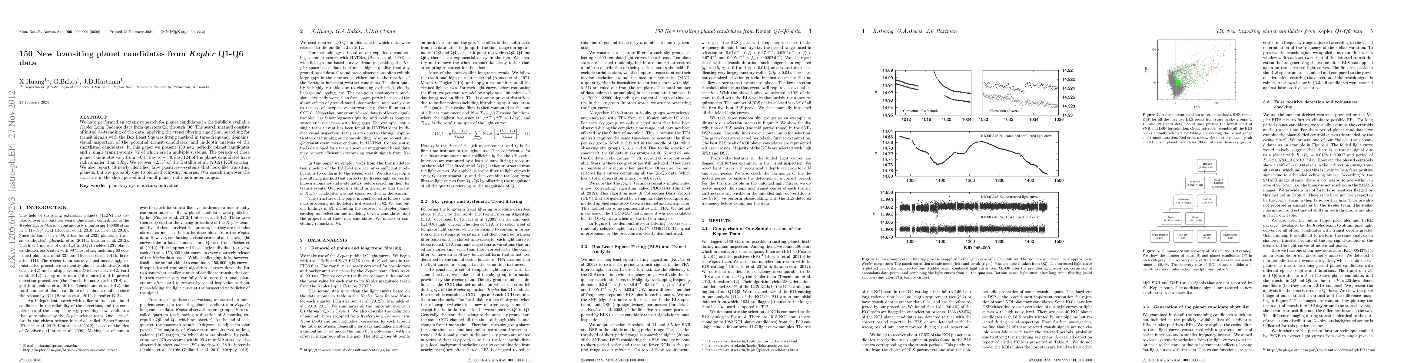 We have performed an extensive search for planet candidates in the publicly available Kepler Long Cadence data from quarters Q1 through Q6. The search method consists of initial de-trending of the data, applying the trend filtering algorithm, searching for transit signals with the Box Least Squares fitting method in three frequency domains, visual inspection of the potential transit candidates, and in-depth analysis of the shortlisted candidates. In this paper we present 150 new periodic planet candidates and 7 single transit events, 72 of which are in multiple systems. The periods of these planet candidates vary from $\sim$0.17\,day to $\sim$ 440\,day. 124 of the planet candidates have radii smaller than 3 \rearth. We recover 82.5% of the Batalha et al. (2012) KOI catalog. We also report 40 newly identified false positives---systems that look like transiting planets, but are probably due to blended eclipsing binaries. Our search improves the statistics in the short period and small planet radii parameter ranges.