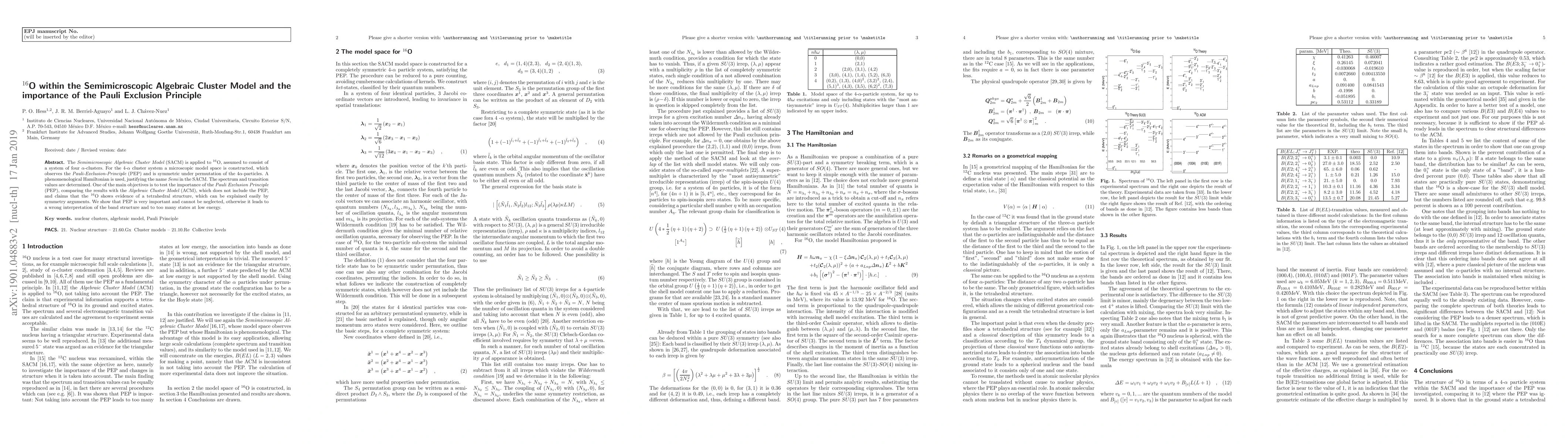 Researchers used the Semimicroscopic Algebraic Cluster Model to study 16O, finding that the Pauli Exclusion Principle is crucial for accurately predicting its energy spectrum and transition values. The results contradict earlier claims of a tetrahedral structure and highlight the importance of this principle in nuclear physics.