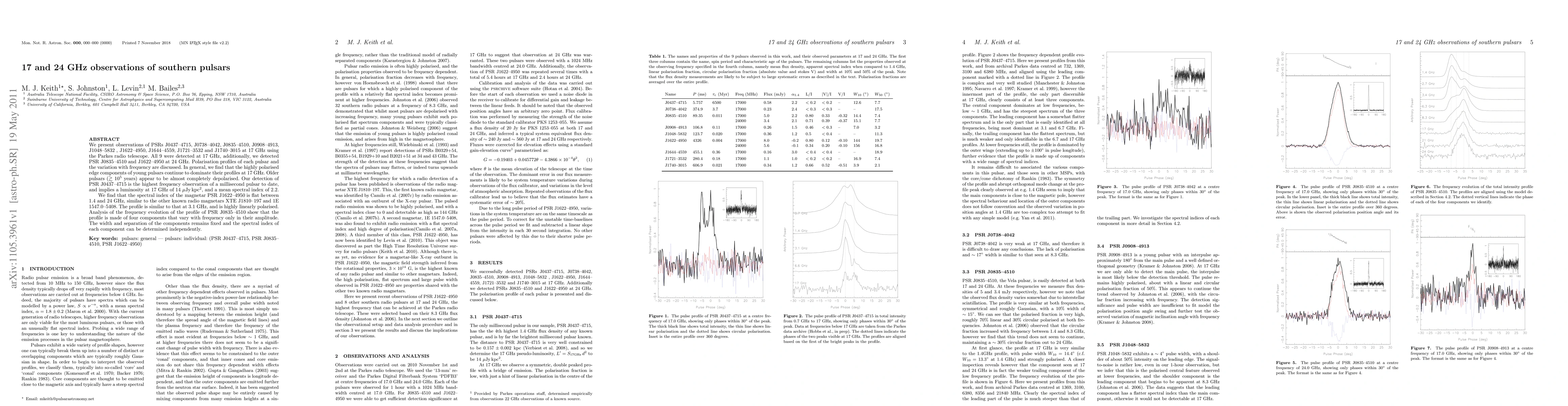 The paper presents observations of 9 southern pulsars at 17 and 24 GHz frequencies, revealing that young pulsars remain highly polarized while older ones become depolarized, with one millisecond pulsar detected at 17 GHz for the first time.