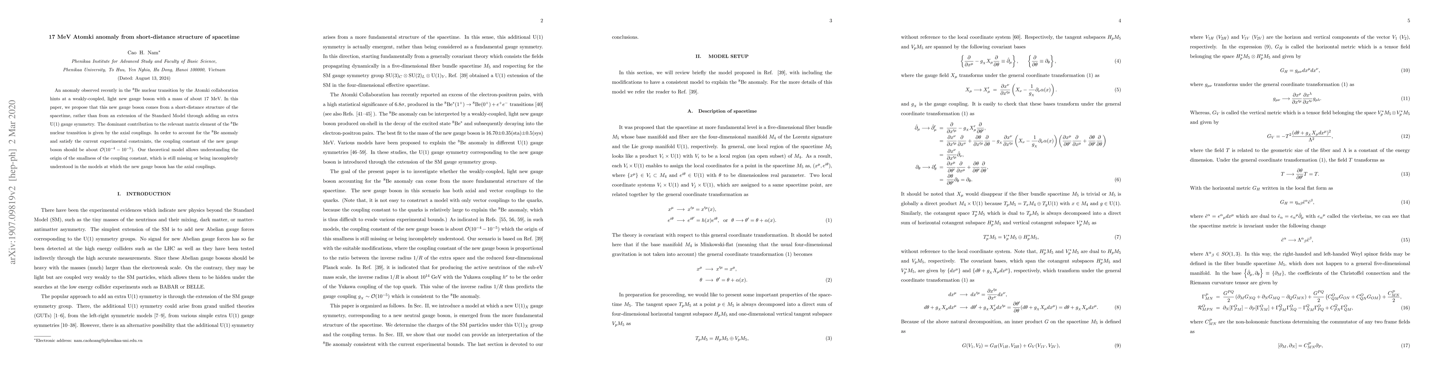 A new gauge boson with a mass of 17 MeV is proposed to explain a recent nuclear transition anomaly, suggesting a short-distance structure of spacetime rather than an extension of the Standard Model.