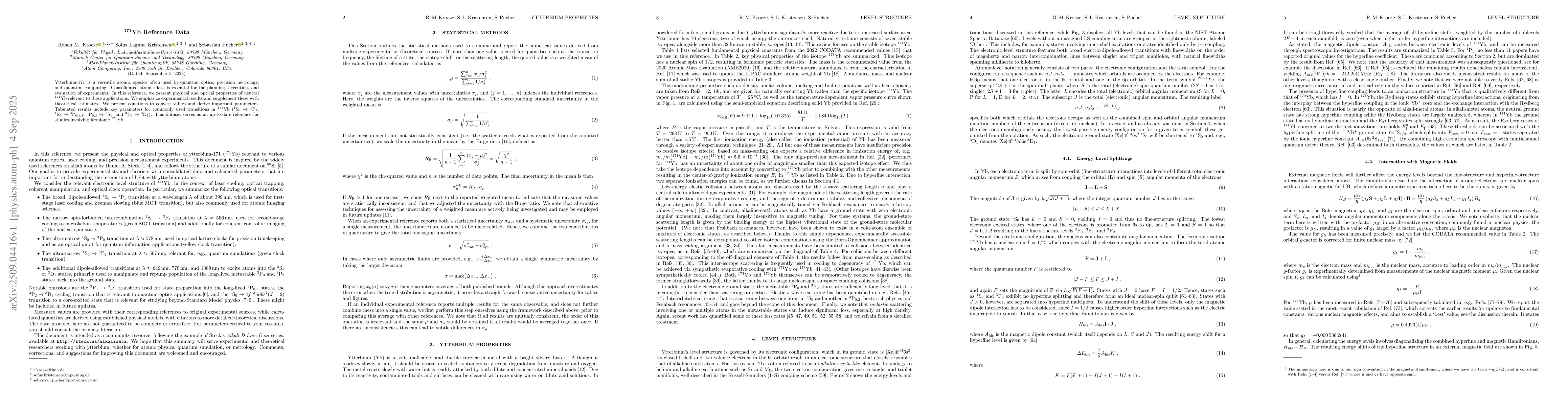 Ytterbium-171 is a versatile atomic species often used in quantum optics, precision metrology, and quantum computing. Consolidated atomic data is essential for the planning, execution, and evaluation of experiments. In this reference, we present physical and optical properties of neutral $^{171}$Yb relevant to these applications. We emphasize experimental results and supplement these with theoretical estimates. We present equations to convert values and derive important parameters. Tabulated results include key parameters for commonly used transitions in $^{171}$Yb (${}^1\mathrm{S}_0\rightarrow{}^1\mathrm{P}_1$, ${}^1\mathrm{S}_0\rightarrow{}^3\mathrm{P}_{0,1,2}\,$, ${}^3\mathrm{P}_{0,2}\rightarrow{}^3\mathrm{S}_1$, and ${}^3\mathrm{P}_0\rightarrow{}^3\mathrm{D}_1$). This dataset serves as an up-to-date reference for studies involving fermionic $^{171}$Yb.