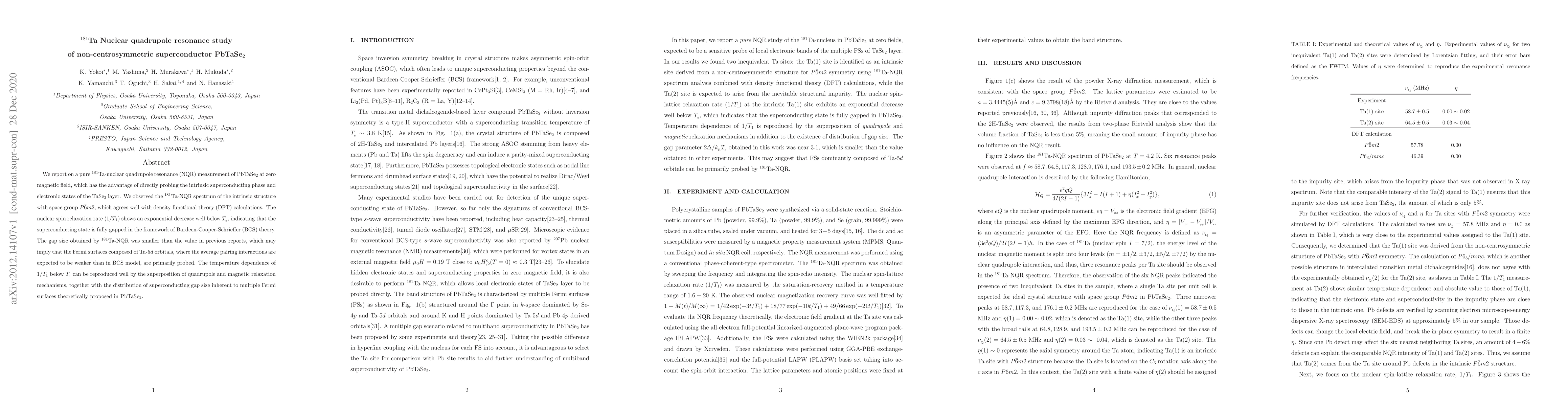 Researchers used a technique called nuclear quadrupole resonance to study the superconducting properties of PbTaSe2, finding that the gap in the superconductor is smaller than previously reported and may be due to weaker pairing interactions between certain Fermi surfaces.