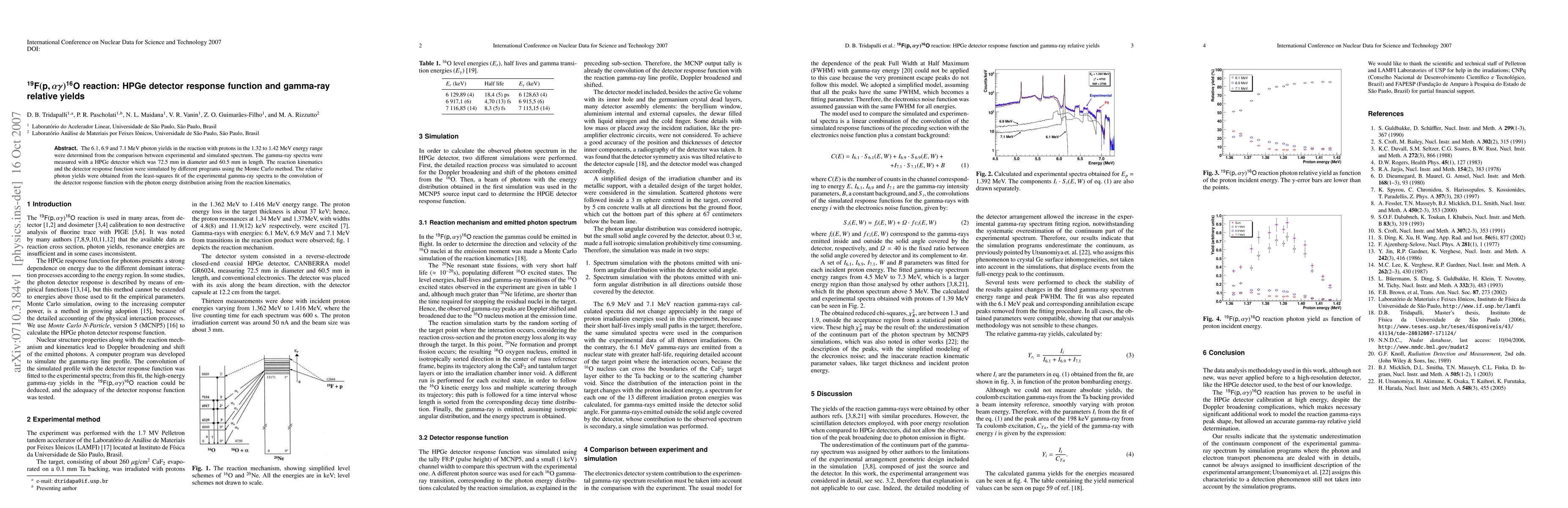 This study investigates the 19F (p, alpha gamma) 16O reaction, determining the relative yields of 6.1, 6.9, and 7.1 MeV gamma rays using a HPGe detector. The detector response function and reaction kinematics were simulated via Monte Carlo methods, leading to the extraction of relative photon yields through a least-squares fit of experimental spectra.