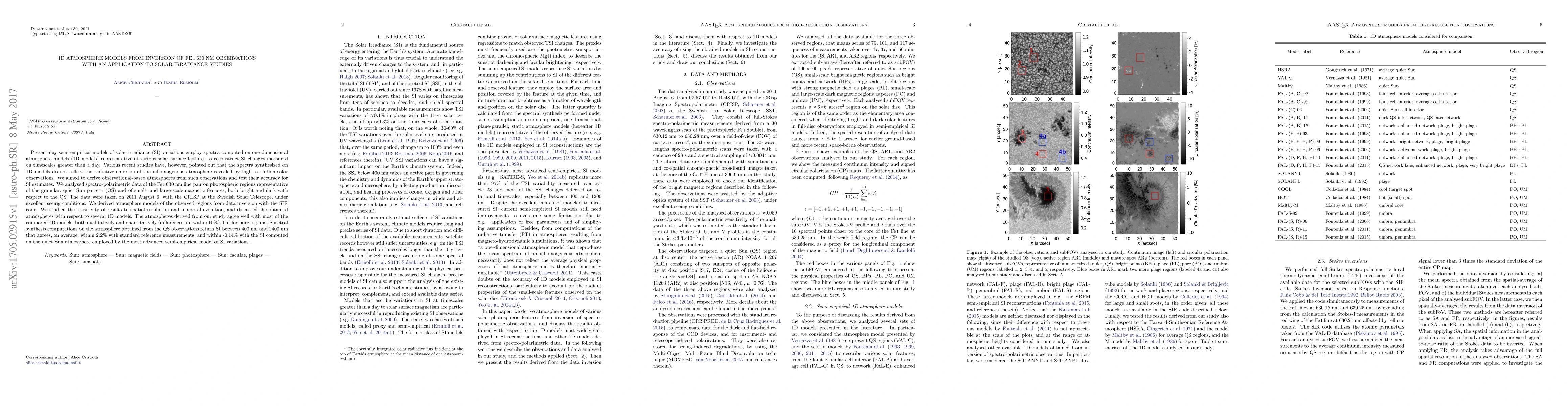Present-day semi-empirical models of solar irradiance (SI) variations employ spectra computed on one-dimensional atmosphere models (1D models) representative of various solar surface features to reconstruct SI changes measured on timescales greater than a day. Various recent studies have, however, pointed out that the spectra synthesized on 1D models do not reflect the radiative emission of the inhomogenous atmosphere revealed by high-resolution solar observations. We aimed to derive observational-based atmospheres from such observations and test their accuracy for SI estimates. We analysed spectro-polarimetric data of the Fe I 630 nm line pair on photospheric regions representative of the granular, quiet Sun pattern (QS) and of small- and large-scale magnetic features, both bright and dark with respect to the QS. The data were taken on 2011 August 6, with the CRISP at the Swedish Solar Telescope, under excellent seeing conditions. We derived atmosphere models of the observed regions from data inversion with the SIR code. We studied the sensitivity of results to spatial resolution and temporal evolution, and discussed the obtained atmospheres with respect to several 1D models. The atmospheres derived from our study agree well with most of the compared 1D models, both qualitatively and quantitatively (differences are within 10%), but for pore regions. Spectral synthesis computations on the atmosphere obtained from the QS observations return SI between 400 nm and 2400 nm that agrees, on average, within 2.2% with standard reference measurements, and within -0.14% with the SI computed on the quiet Sun atmosphere employed by the most advanced semi-empirical model of SI variations.