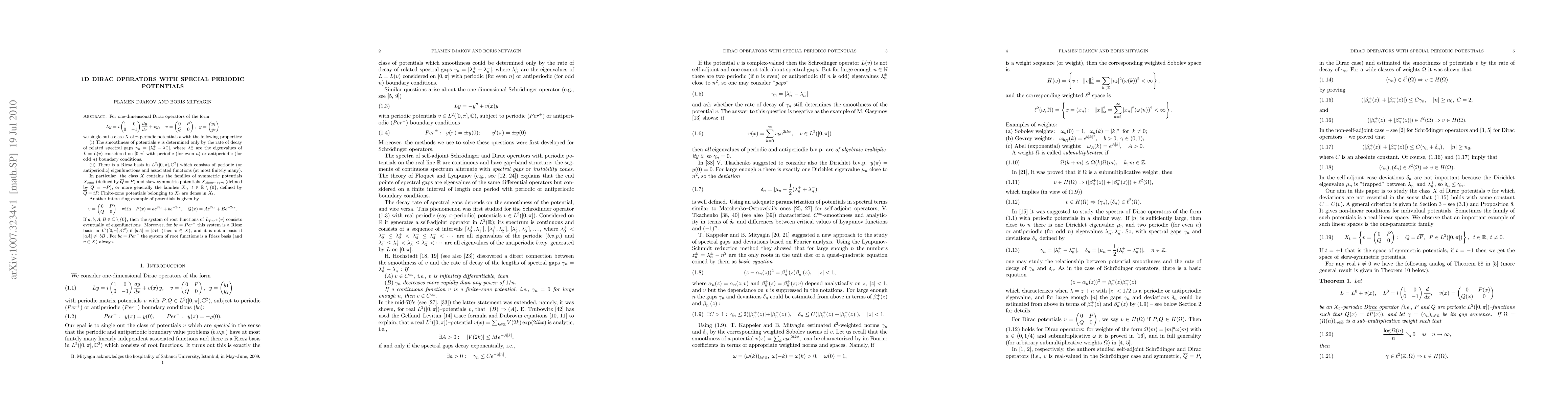 The work presents novel results on the spectral theory of Dirac operators with periodic potentials, including the construction of a spectral expansion for one-dimensional periodic Dirac operators.
