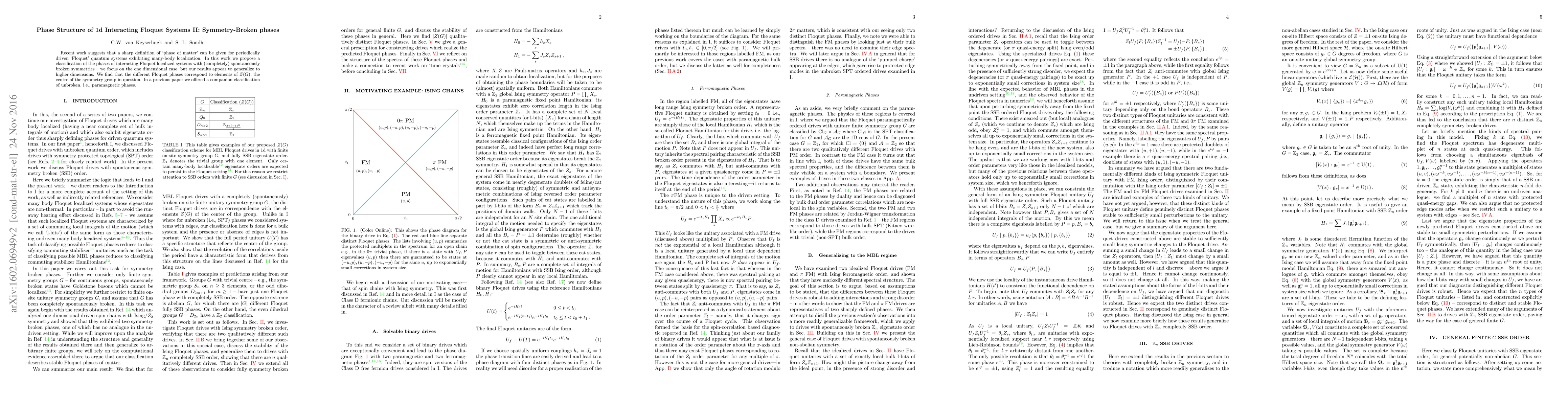 Recent work suggests that a sharp definition of `phase of matter' can be given for periodically driven `Floquet' quantum systems exhibiting many-body localization. In this work we propose a classification of the phases of interacting Floquet localized systems with (completely) spontaneously broken symmetries -- we focus on the one dimensional case, but our results appear to generalize to higher dimensions. We find that the different Floquet phases correspond to elements of $Z(G)$, the centre of the symmetry group in question. In a previous paper we offered a companion classification of unbroken, i.e., paramagnetic phases.