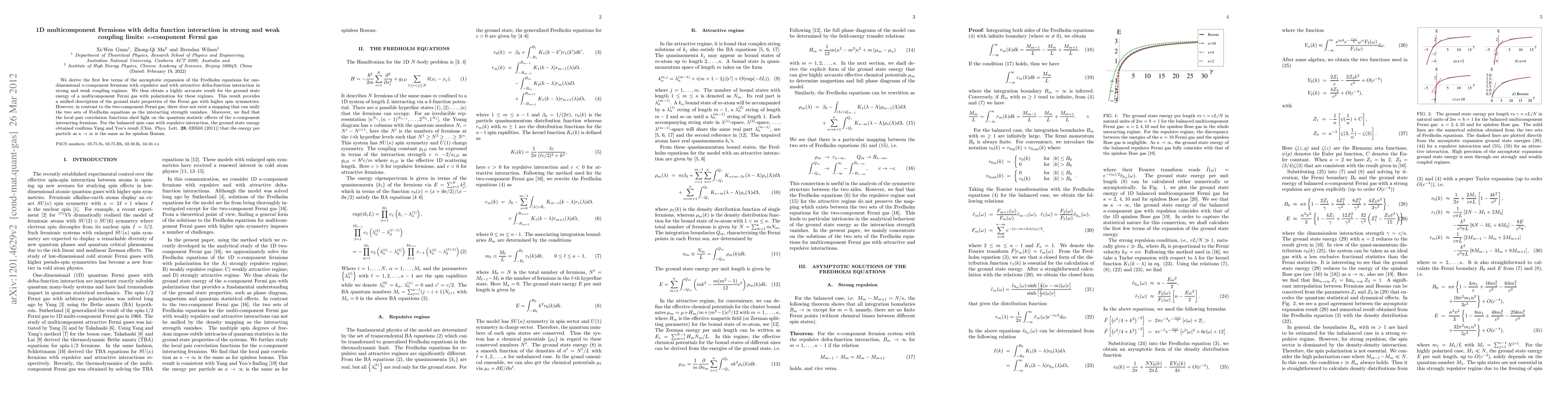 This paper derives the asymptotic expansion of Fredholm equations for 1D $\kappa$-component fermions with delta-function interactions, providing accurate ground state energy for both strong and weak coupling regimes. It reveals unique properties of the multicomponent Fermi gas compared to the two-component case, highlighting quantum statistical effects through local pair correlation functions.