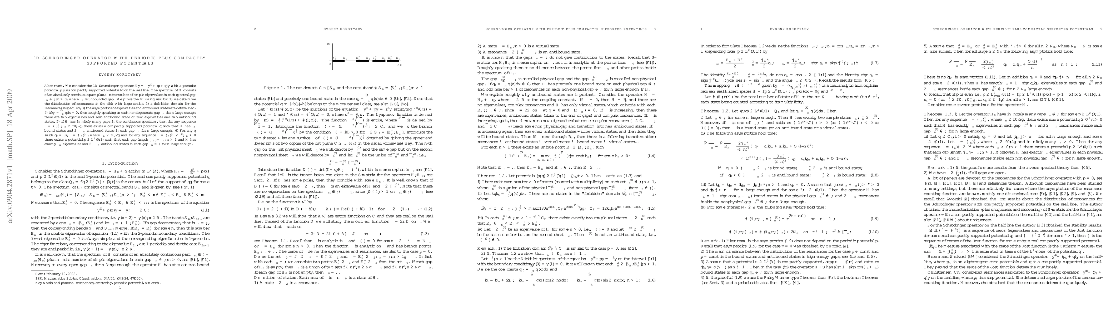 This paper studies a 1D Schr"odinger operator with periodic plus compactly supported potentials, showing that its spectrum consists of gaps with simple eigenvalues and antibound states in each gap.