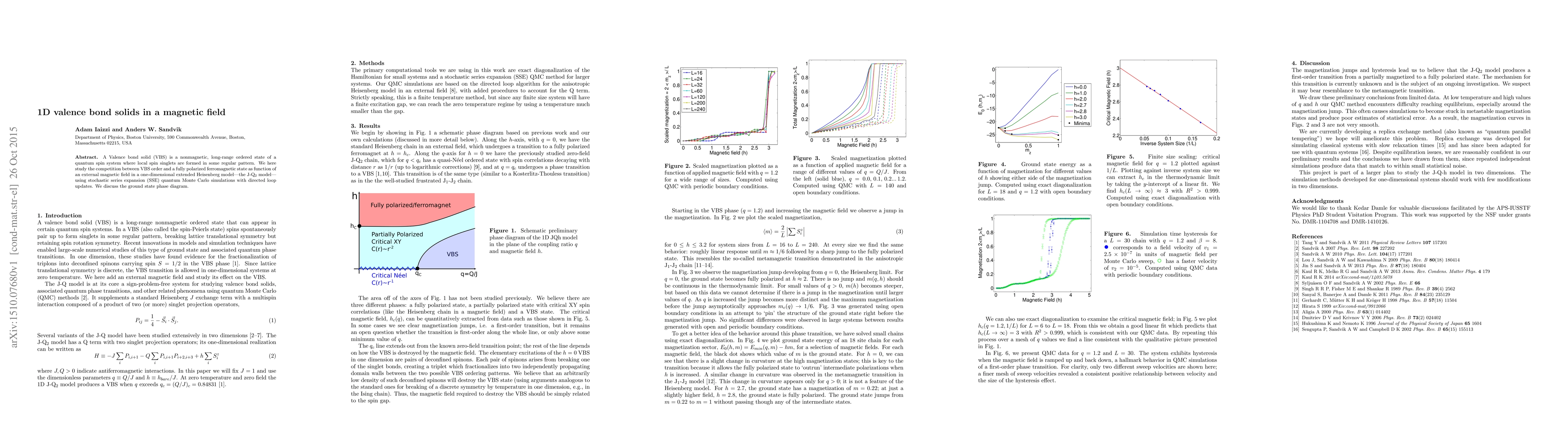 This work is novel because it explores the behavior of the 1D J-Q2 model in a magnetic field, which has implications for understanding magnetism in quantum systems