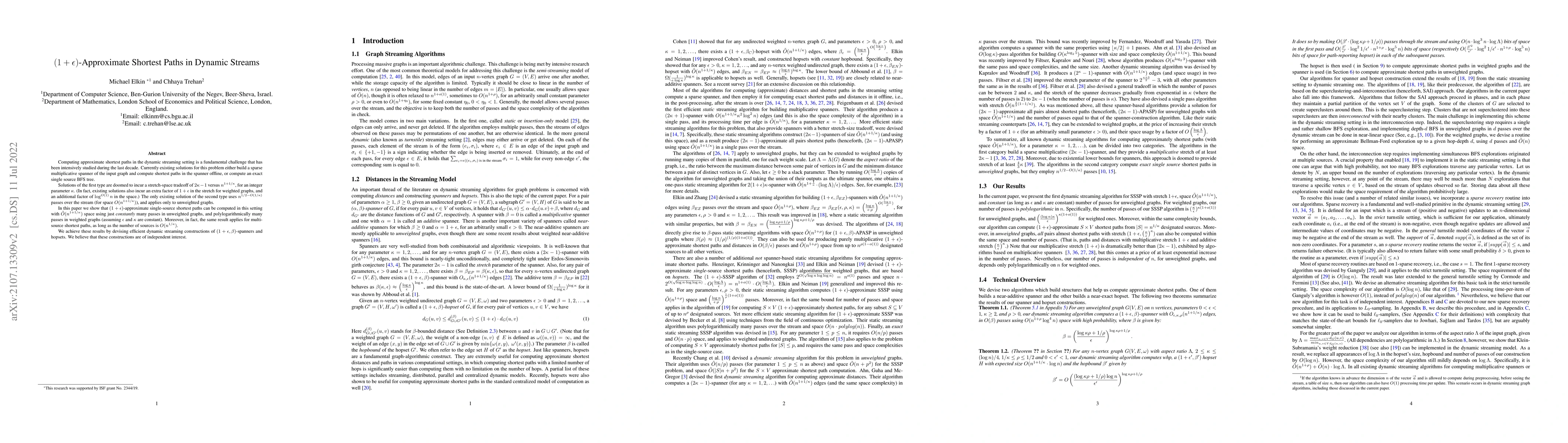 Computing approximate shortest paths in the dynamic streaming setting is a fundamental challenge that has been intensively studied during the last decade. Currently existing solutions for this problem either build a sparse multiplicative spanner of the input graph and compute shortest paths in the spanner offline, or compute an exact single source BFS tree. Solutions of the first type are doomed to incur a stretch-space tradeoff of $2\kappa-1$ versus $n^{1+1/\kappa}$, for an integer parameter $\kappa$. (In fact, existing solutions also incur an extra factor of $1+\epsilon$ in the stretch for weighted graphs, and an additional factor of $\log^{O(1)}n$ in the space.) The only existing solution of the second type uses $n^{1/2 - O(1/\kappa)}$ passes over the stream (for space $O(n^{1+1/\kappa})$), and applies only to unweighted graphs. In this paper we show that $(1+\epsilon)$-approximate single-source shortest paths can be computed in this setting with $\tilde{O}(n^{1+1/\kappa})$ space using just \emph{constantly} many passes in unweighted graphs, and polylogarithmically many passes in weighted graphs (assuming $\epsilon$ and $\kappa$ are constant). Moreover, in fact, the same result applies for multi-source shortest paths, as long as the number of sources is $O(n^{1/\kappa})$. We achieve these results by devising efficient dynamic streaming constructions of $(1 + \epsilon, \beta)$-spanners and hopsets. We believe that these constructions are of independent interest.