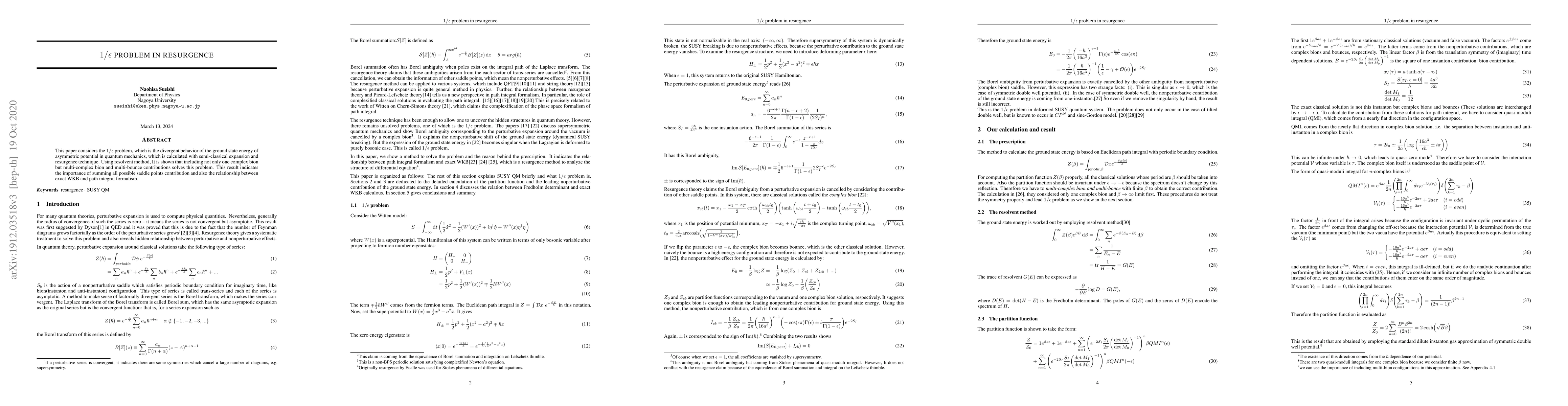 Researchers solved the $1/ u$ problem in resurgence by showing that including multiple complex bion and bounce contributions resolves divergent behavior in quantum mechanics, highlighting the importance of summing saddle point contributions.