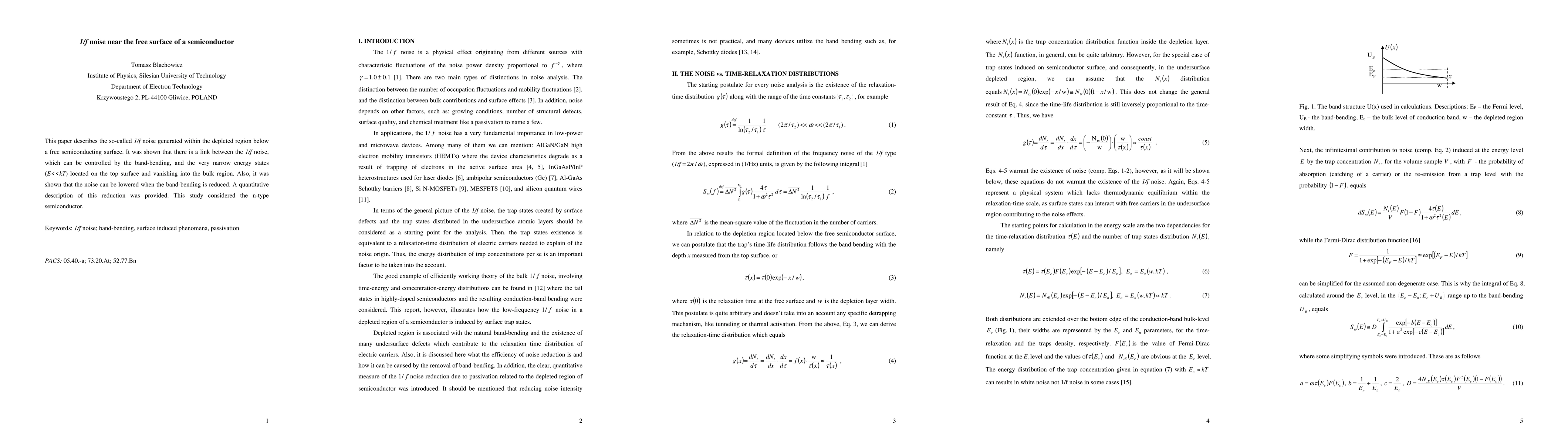 between the 1/f noise, which can be controlled by the band-bending, and the