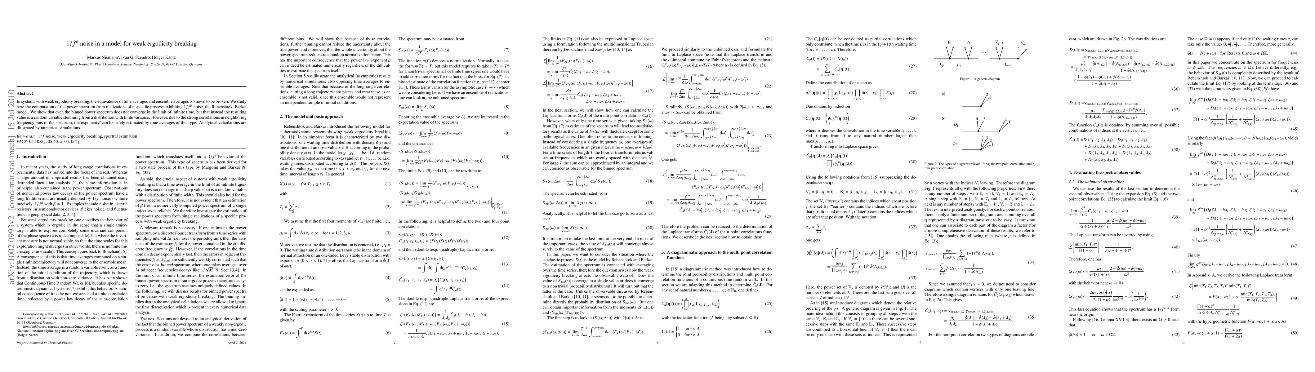 In systems with weak ergodicity breaking, the equivalence of time averages and ensemble averages is known to be broken. We study here the computation of the power spectrum from realizations of a specific process exhibiting 1/f^beta noise, the Rebenshtok-Barkai model. We show that even the binned power spectrum does not converge in the limit of infinite time, but that instead the resulting value is a random variable stemming from a distribution with finite variance. However, due to the strong correlations in neighboring frequency bins of the spectrum, the exponent beta can be safely estimated by time averages of this type. Analytical calculations are illustrated by numerical simulations.