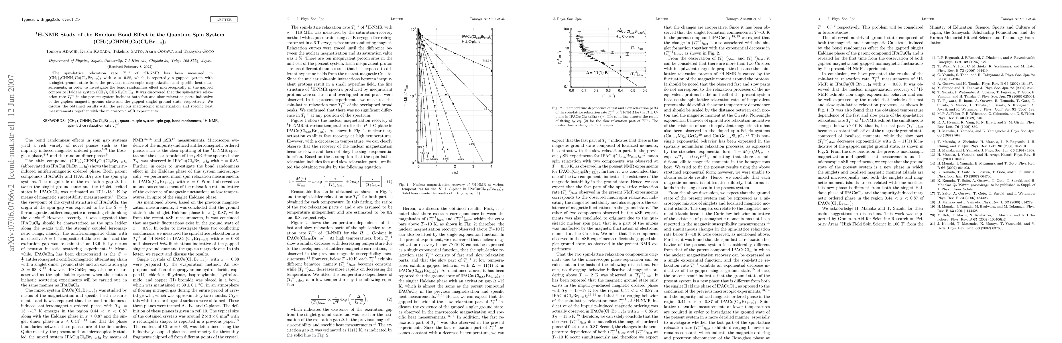 This paper investigates the bond randomness effect in the quantum spin system (CH$_3$)$_2$CHNH$_3$Cu(Cl$_x$Br$_{1-x}$)$_3$ using $^1$H-NMR to measure spin-lattice relaxation rate $T_1^{-1}$. The results reveal both fast and slow relaxation parts, indicating a coexistence of gapless and gapped magnetic states, which are discussed in the context of previous macroscopic and microscopic experiments.