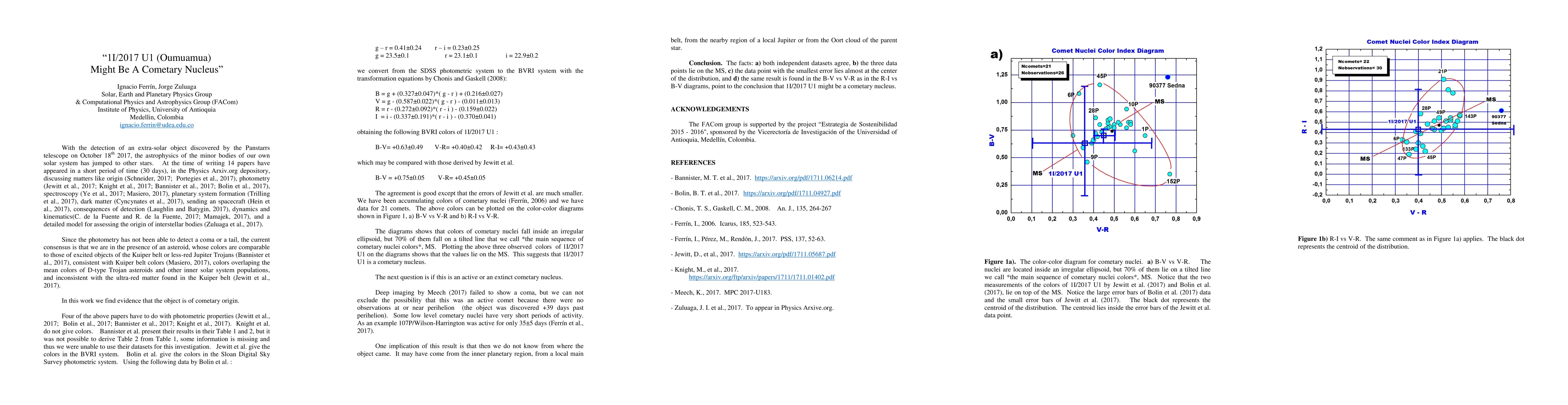 In this work we find evidence that the object is of cometary origin.