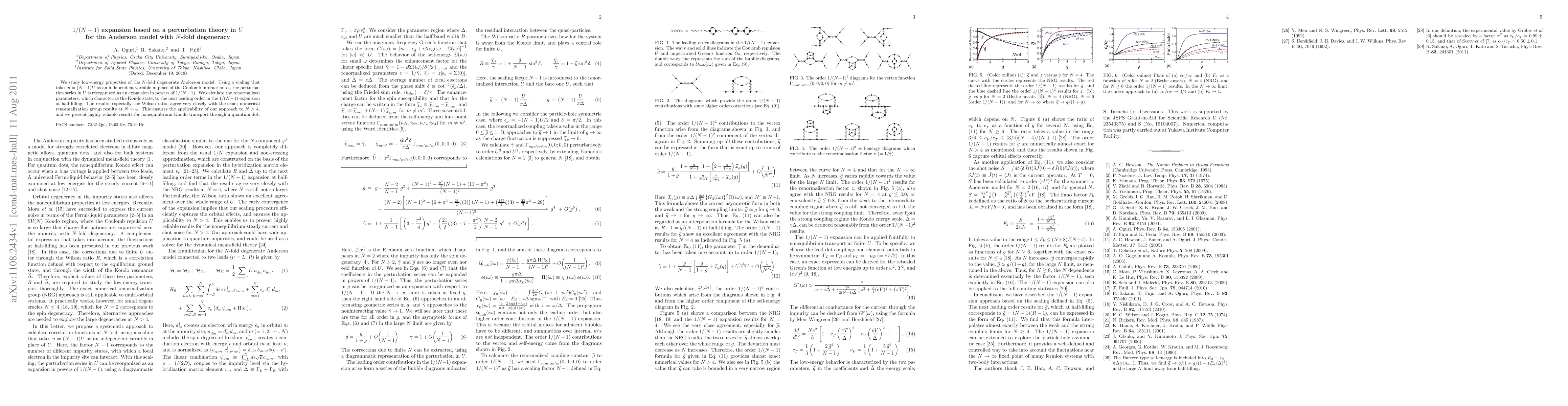 We study low-energy properties of the N-fold degenerate Anderson model. Using a scaling that takes u=(N-1) U as an independent variable in place of the Coulomb interaction U, the perturbation series in U is reorganized as an expansion in powers of 1/(N-1). We calculate the renormalized parameters, which characterize the Kondo state, to the next leading order in the 1/(N-1) expansion at half-filling. The results, especially the Wilson ratio, agree very closely with the exact numerical renormalization group results at N=4. This ensures the applicability of our approach to N > 4, and we present highly reliable results for nonequilibrium Kondo transport through a quantum dot.
