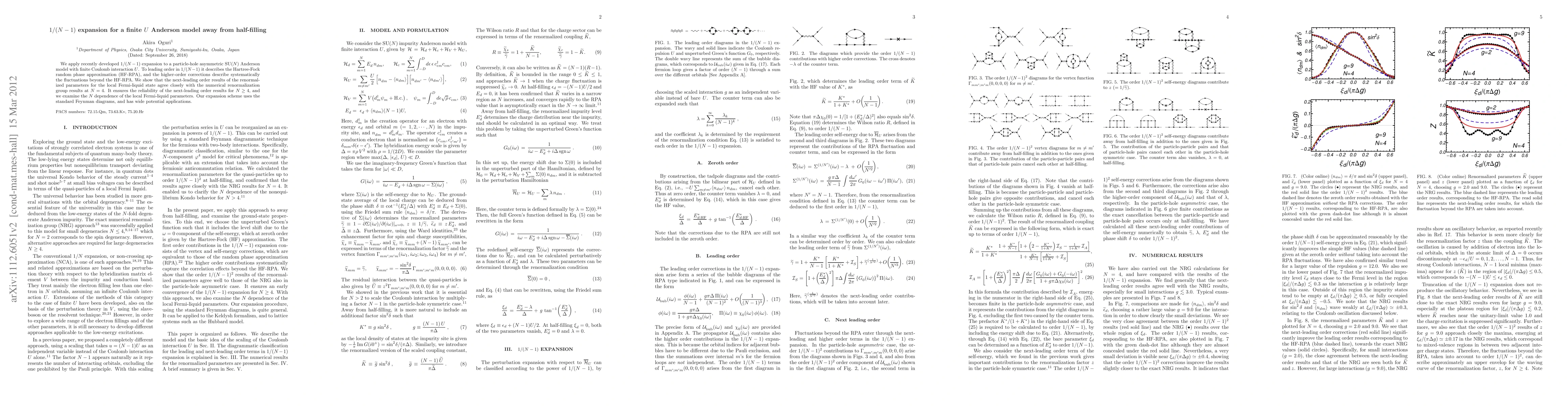 This paper applies the 1/(N-1) expansion to a particle-hole asymmetric SU(N) Anderson model with finite Coulomb interaction U, showing that it describes the Hartree-Fock random phase approximation and higher-order corrections. The next-leading order results for renormalized parameters align well with numerical renormalization group results, confirming the expansion's reliability for N>4.