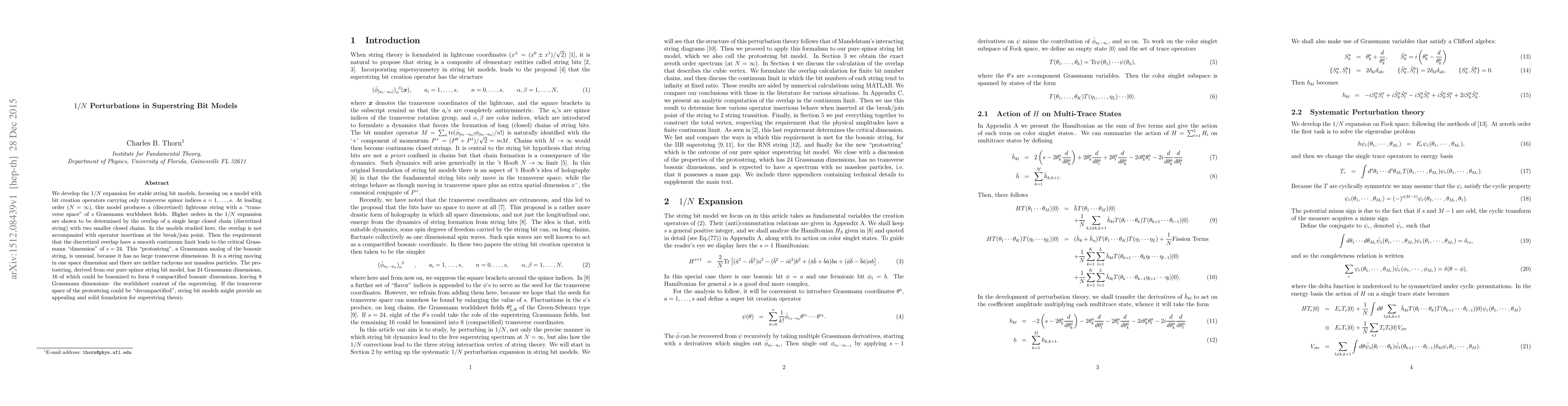 This paper develops the 1/N expansion for stable string bit models, revealing a "protostring" with 24 Grassmann dimensions, 16 of which can be bosonized to form compactified dimensions. The absence of tachyons and massless particles suggests a potential foundation for superstring theory if the 24 dimensions could be decompactified.