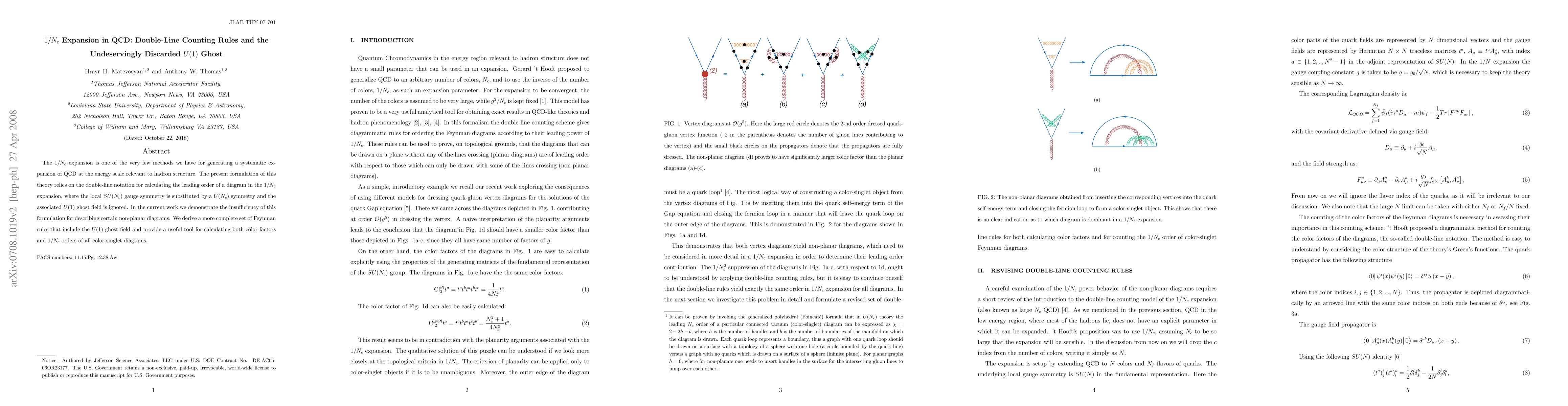 The 1/Nc expansion is one of the very few methods we have for generating a systematic expansion of QCD at the energy scale relevant to hadron structure. The present formulation of this theory relies on the double-line notation for calculating the leading order of a diagram in the 1/Nc expansion, where the local SU(Nc) gauge symmetry is substituted by a U(Nc) symmetry and the associated U(1) ghost field is ignored. In the current work we demonstrate the insufficiency of this formulation for describing certain non-planar diagrams. We derive a more complete set of Feynman rules that include the U(1) ghost field and provide a useful tool for calculating both color factors and 1/Nc orders of all color-singlet diagrams.