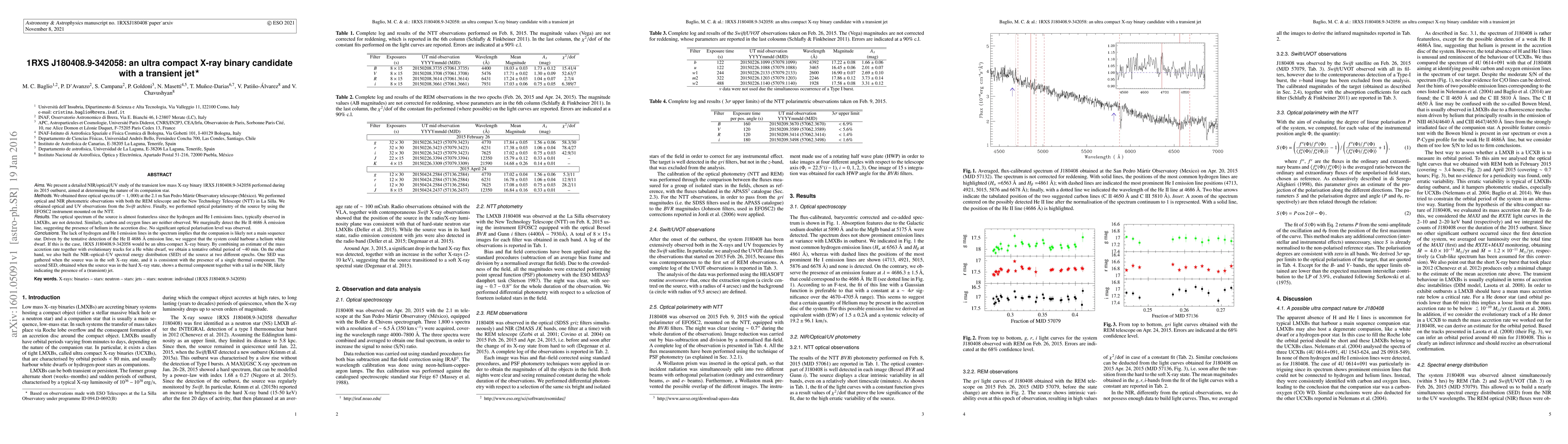 This study investigates the transient low mass X-ray binary 1RXS J180408.9-342058, suggesting it may harbor a helium white dwarf companion based on the lack of hydrogen and He I emission lines in its optical spectrum. The source exhibits a transient jet in its NIR-optical-UV spectral energy distribution, particularly during its hard X-ray state.