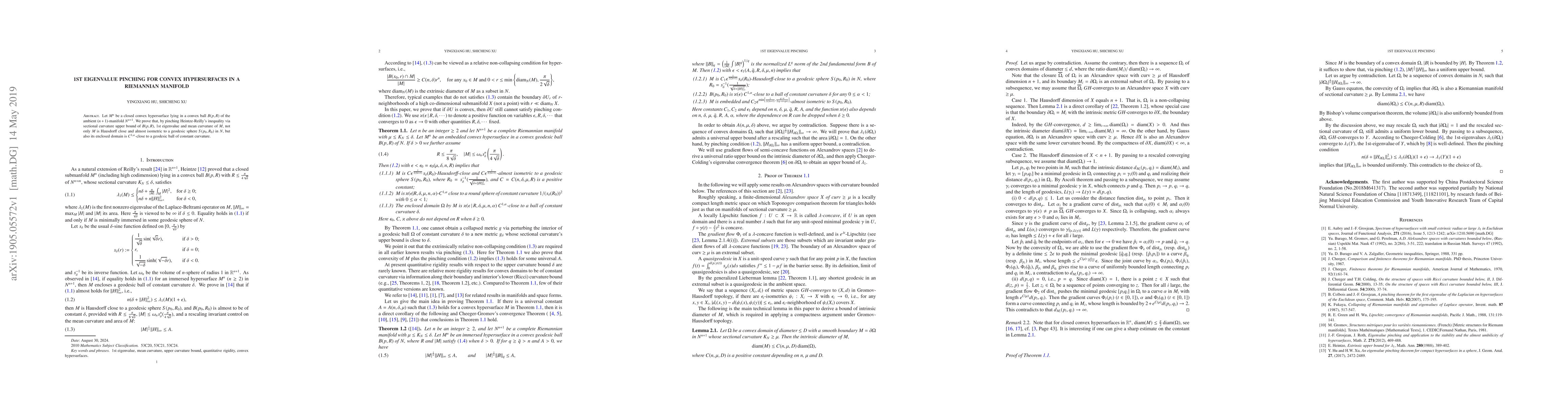 Let $M^n$ be a closed convex hypersurface lying in a convex ball $B(p,R)$ of the ambient $(n+1)$-manifold $N^{n+1}$. We prove that, by pinching Heintze-Reilly's inequality via sectional curvature upper bound of $B(p,R)$, 1st eigenvalue and mean curvature of $M$, not only $M$ is Hausdorff close and almost isometric to a geodesic sphere $S(p_0,R_0)$ in $N$, but also its enclosed domain is $C^{1,\alpha}$-close to a geodesic ball of constant curvature.