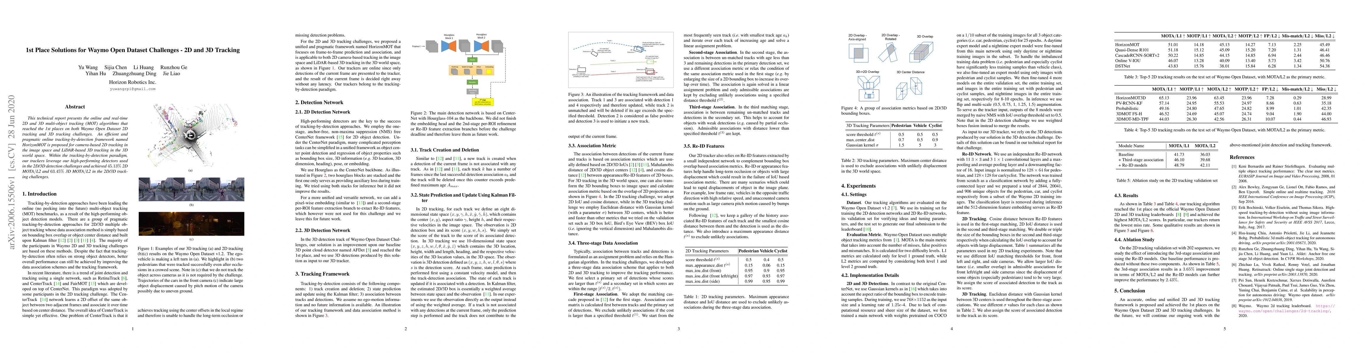 The paper introduces HorizonMOT, a real-time 2D and 3D multi-object tracking framework that secured top ranks in Waymo Open Dataset challenges. It utilizes high-performing detectors for camera and LiDAR data, achieving 45.13% 2D MOTA and 63.45% 3D MOTA.
