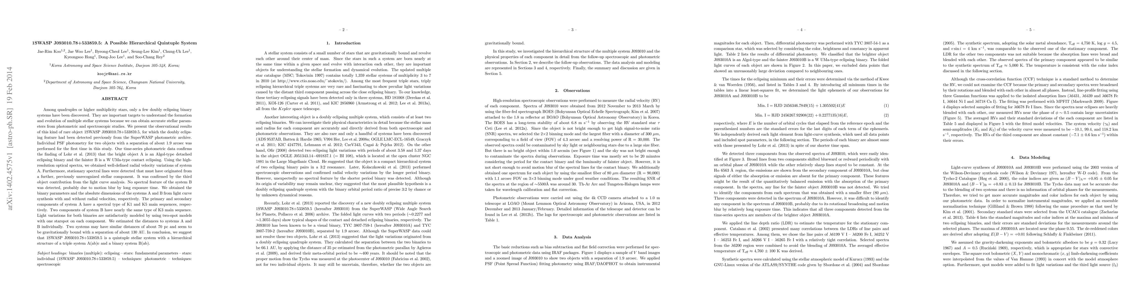 The paper presents a detailed analysis of a rare hierarchical quintuple system, employing light curve synthesis and radial velocity measurements to derive the absolute dimensions and distances of its binary components.