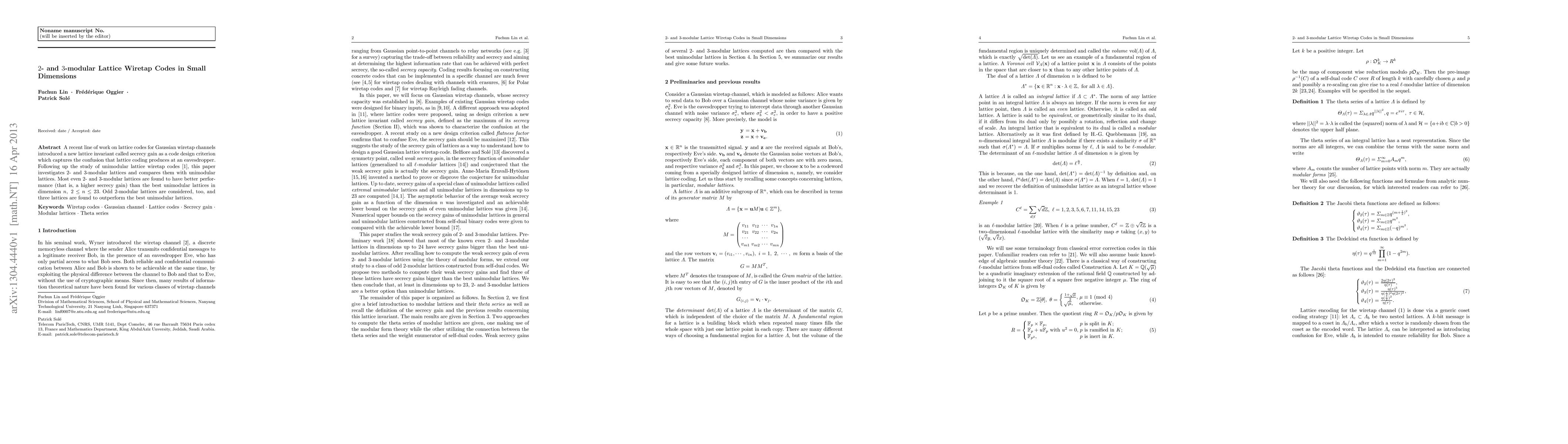 This paper explores 2- and 3-modular lattices for Gaussian wiretap channels, introducing secrecy gain as a performance metric. It finds that most even 2- and 3-modular lattices outperform unimodular lattices in dimensions 2 to 23, with some odd 2-modular lattices also achieving superior results.