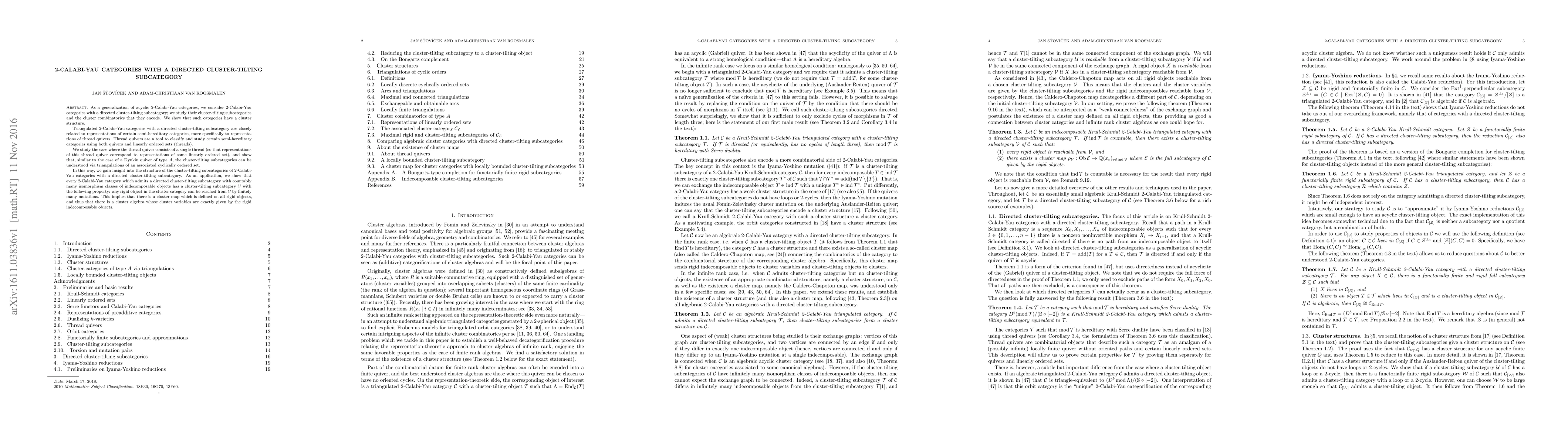 As a generalization of acyclic 2-Calabi-Yau categories, we consider 2-Calabi-Yau categories with a directed cluster-tilting subcategory; we study their cluster-tilting subcategories and the cluster combinatorics that they encode. We show that such categories have a cluster structure. Triangulated 2-Calabi-Yau categories with a directed cluster-tilting subcategory are closely related to representations of certain semi-hereditary categories, more specifically to representations of thread quivers. Thread quivers are a tool to classify and study certain semi-hereditary categories using both quivers and linearly ordered sets (threads). We study the case where the thread quiver consists of a single thread (so that representations of this thread quiver correspond to representations of some linearly ordered set), and show that, similar to the case of a Dynkin quiver of type $A$, the cluster-tilting subcategories can be understood via triangulations of an associated cyclically ordered set. In this way, we gain insight into the structure of the cluster-tilting subcategories of 2-Calabi-Yau categories with a directed cluster-tilting subcategory. As an application, we show that every 2-Calabi-Yau category which admits a directed cluster-tilting subcategory with countably many isomorphism classes of indecomposable objects has a cluster-tilting subcategory $\mathcal{V}$ with the following property: any rigid object in the cluster category can be reached from $\mathcal{V}$ by finitely many mutations. This implies that there is a cluster map which is defined on all rigid objects, and thus that there is a cluster algebra whose cluster variables are exactly given by the rigid indecomposable objects.