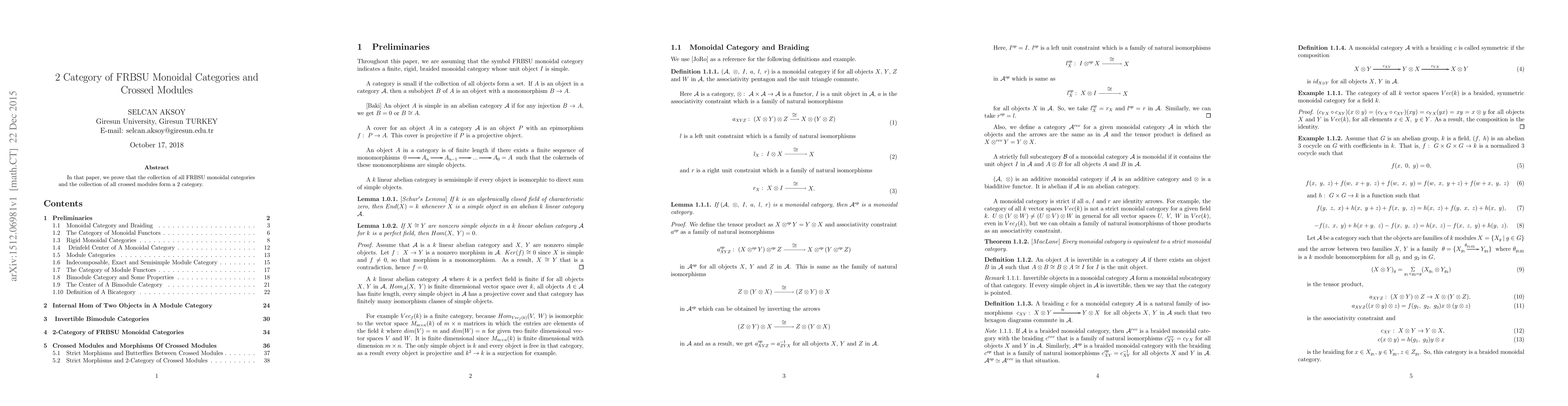 Summary: This paper establishes a 2-category structure for both FRBSU monoidal categories and crossed modules, demonstrating their interrelations and providing a framework for their categorical analysis.