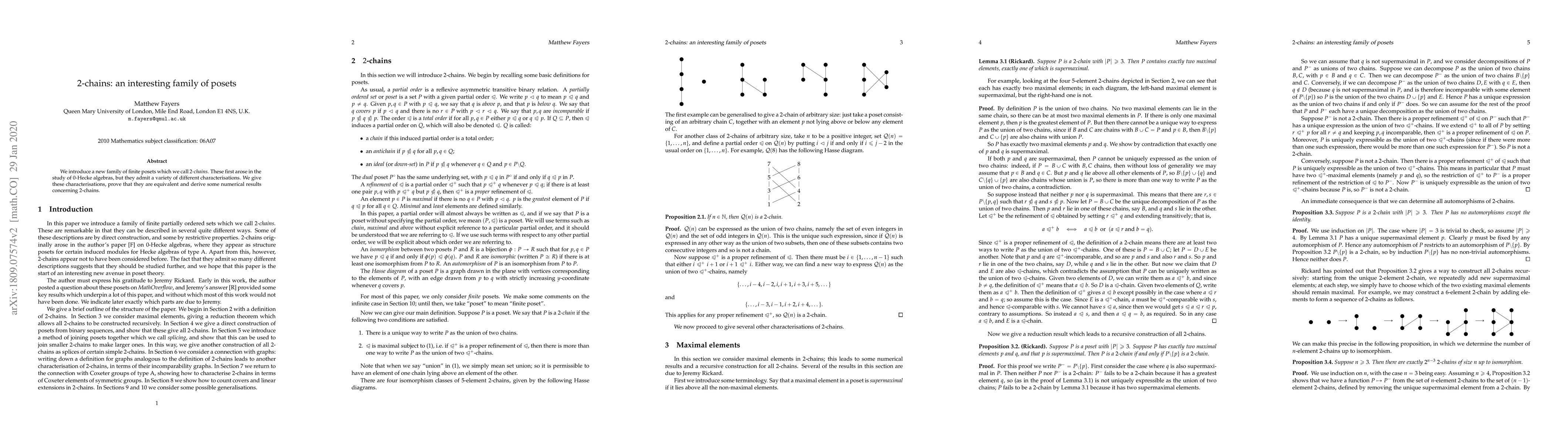 This paper introduces a novel family of finite posets called 2-chains, initially discovered in the study of 0-Hecke algebras, and provides multiple characterisations, proving their equivalence and deriving associated numerical results.
