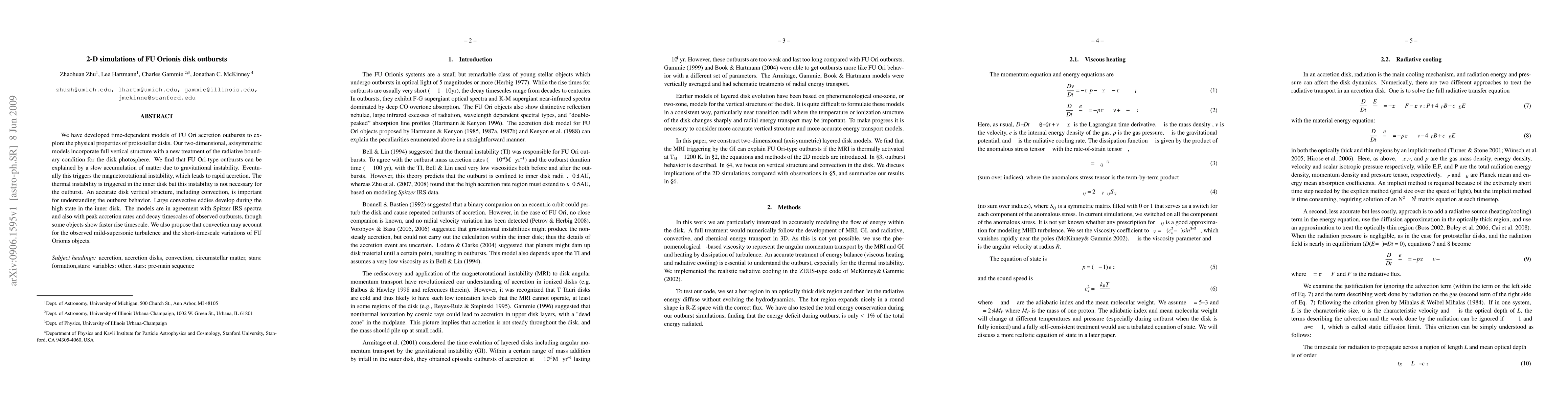 This paper presents 2-D simulations of FU Orionis disk outbursts, showing that gravitational instability triggers magnetorotational instability leading to rapid accretion. Convection plays a crucial role in the outburst behavior, explaining mild-supersonic turbulence and short-timescale variations, and the models match observed spectral and accretion characteristics.