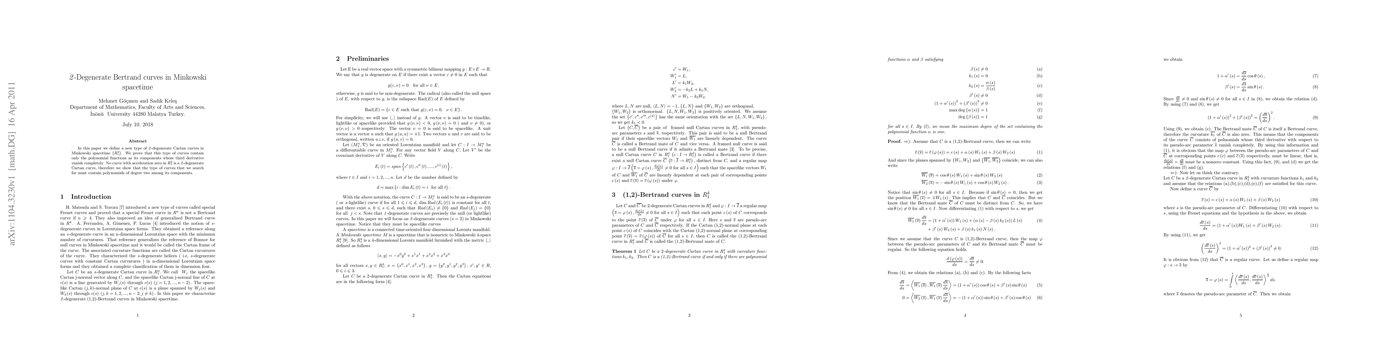 This paper introduces 2-degenerate Cartan curves in Minkowski spacetime, proving they consist only of polynomial functions with a vanishing third derivative. It's established that no curve with zero acceleration in this space is 2-degenerate, implying these curves are of degree two polynomials.