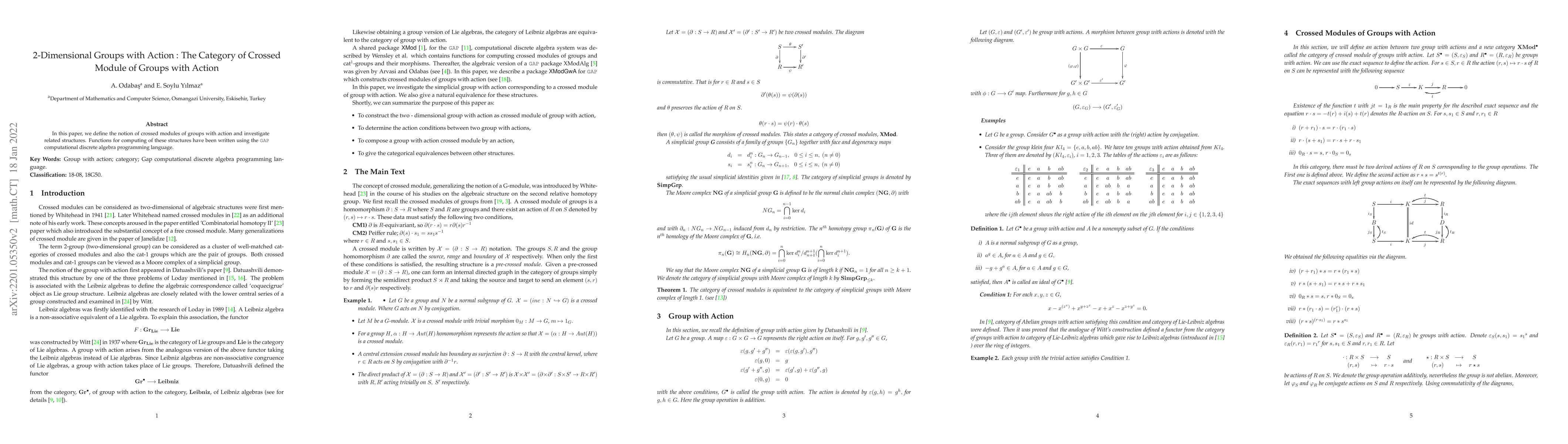 In this paper, we define the notion of crossed modules of groups with action and investigate related structures. Functions for computing of these structures have been written using the GAP computational discrete algebra programming language.
