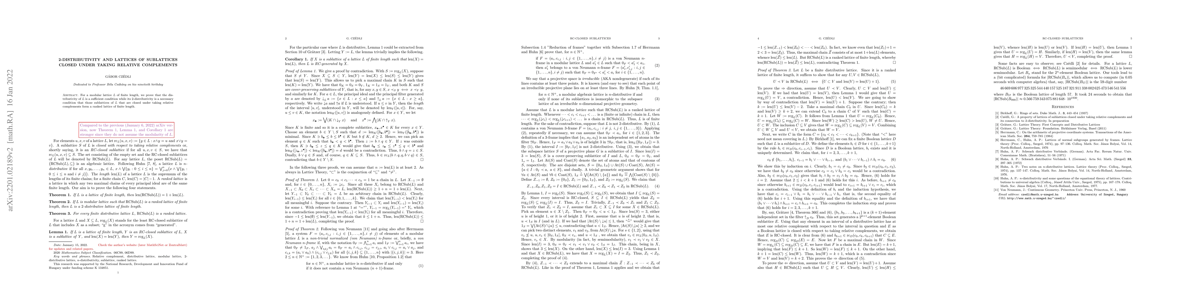 Researchers prove that a modular lattice's distributivity is sufficient for its sublattices closed under relative complements to form a ranked lattice, while 2-distributivity is necessary for this property.