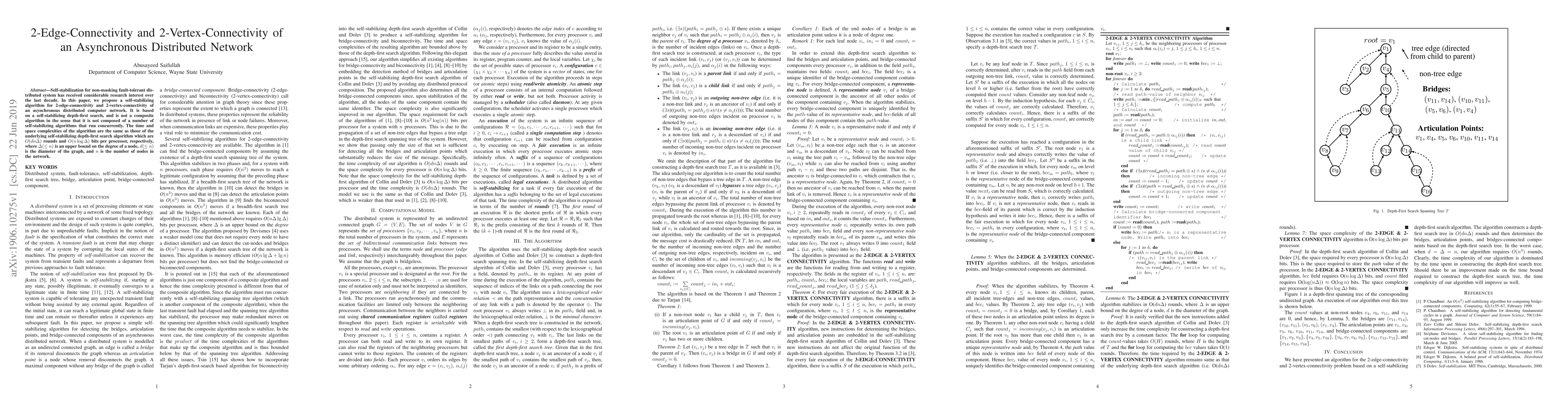 Researchers propose a self-stabilizing algorithm to maintain 2-edge-connectivity and 2-vertex-connectivity in an asynchronous distributed network, achieving O(dn heta) rounds and O(nlog heta) bits per processor.