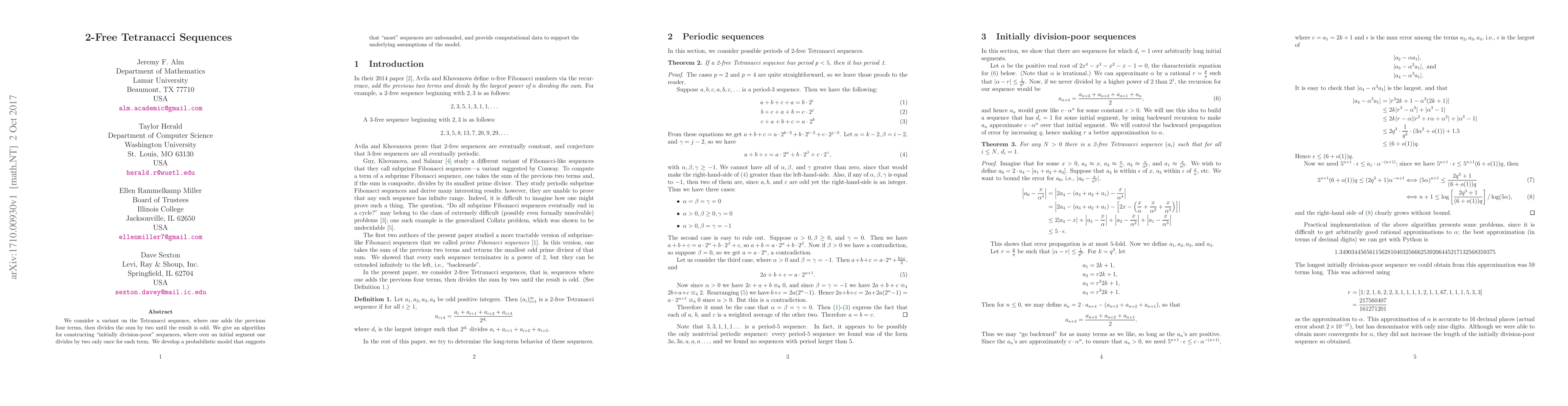 We consider a variant on the Tetranacci sequence, where one adds the previous four terms, then divides the sum by two until the result is odd. We give an algorithm for constructing "initially division-poor" sequences, where over an initial segment one divides by two only once for each term. We develop a probabilistic model that suggests that "most" sequences are unbounded, and provide computational data to support the underlying assumptions of the model.