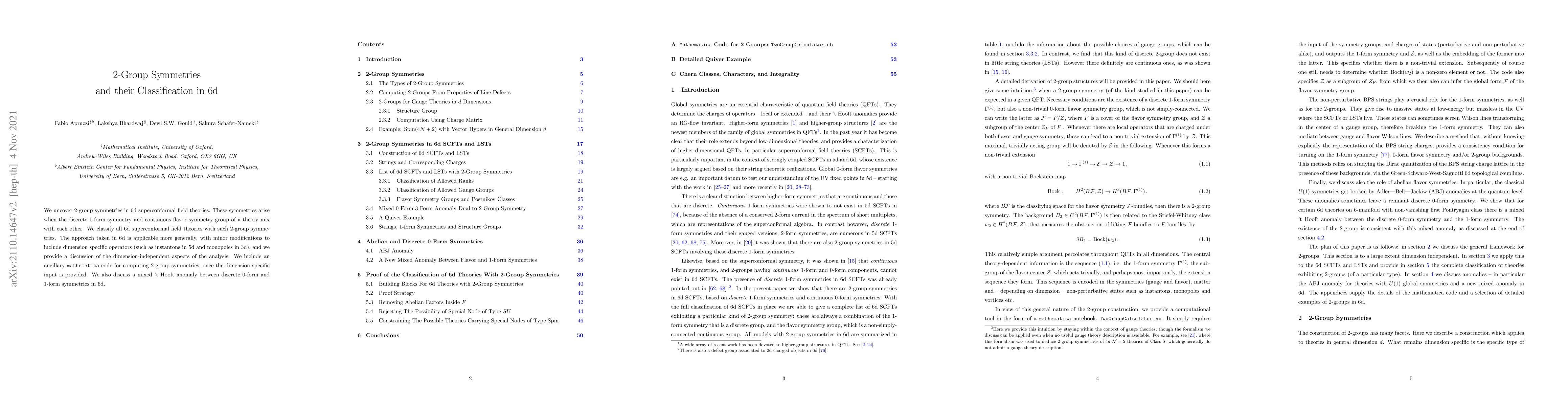 This paper classifies 2-group symmetries in 6d superconformal field theories, arising from the interplay of discrete 1-form and continuous flavor symmetries. It also includes a Mathematica code for computation and discusses dimension-independent aspects of the analysis, alongside a mixed 't Hooft anomaly involving 0-form and 1-form symmetries.