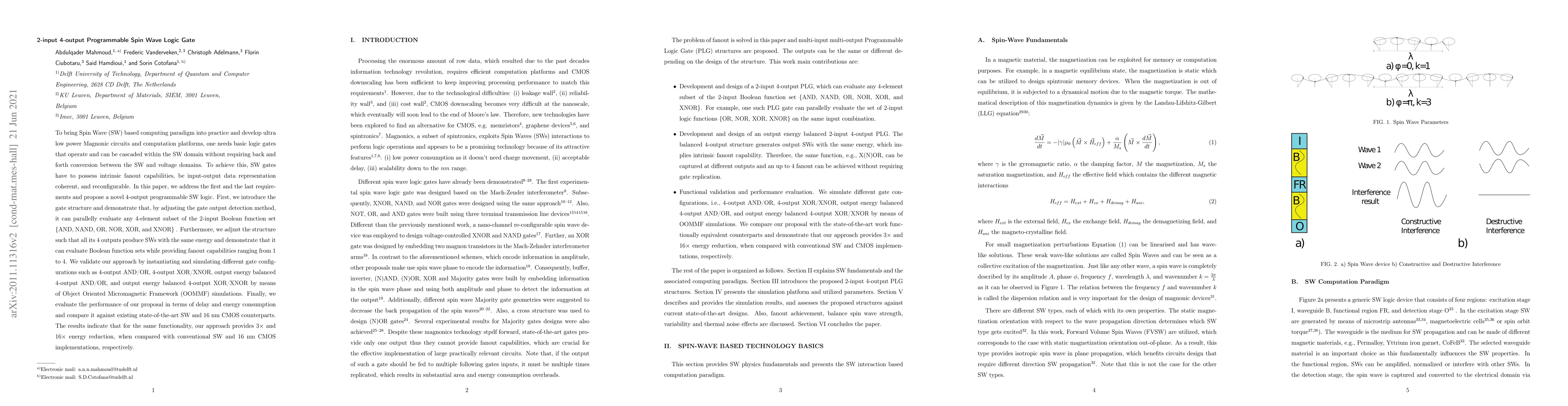 This paper proposes a novel 2-input 4-output programmable Spin Wave (SW) logic gate capable of evaluating various Boolean functions and demonstrating intrinsic fanout capabilities. The gate structure is shown to be energy-efficient, achieving up to 16x lower energy consumption compared to 16nm CMOS counterparts, while also providing significant energy reduction relative to existing SW logic.