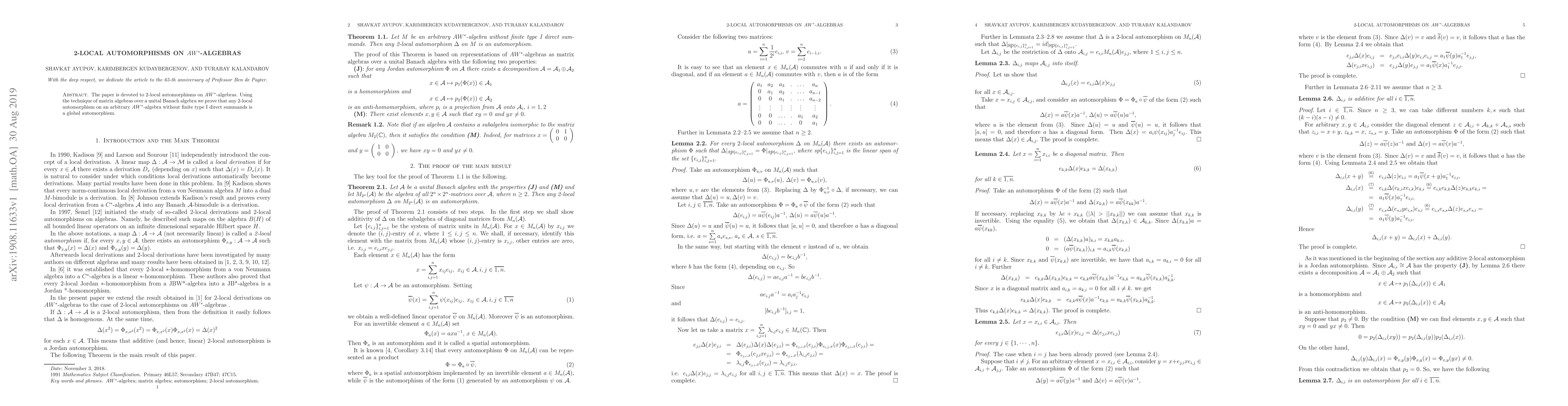 Summary: The paper investigates 2-local automorphisms on $AW^\ast$-algebras and demonstrates that any 2-local automorphism on such algebras without finite type I direct summands is equivalent to a global automorphism, utilizing matrix algebra techniques.