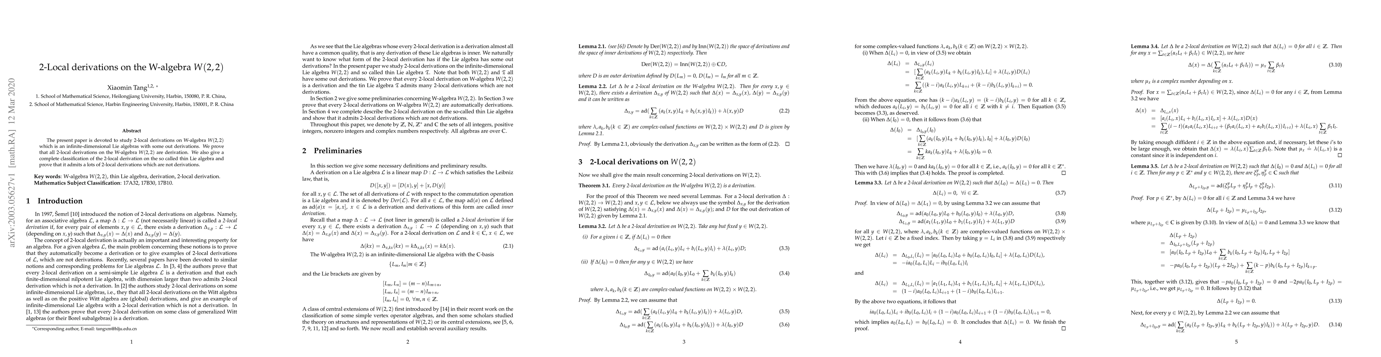 The present paper is devoted to study 2-local derivations on W-algebra $W(2,2)$ which is an infinite-dimensional Lie algebras with some out derivations. We prove that all 2-local derivations on the W-algebra $W(2,2)$ are derivation. We also give a complete classification of the 2-local derivation on the so called thin Lie algebra and prove that it admits a lots of 2-local derivations which are not derivations.