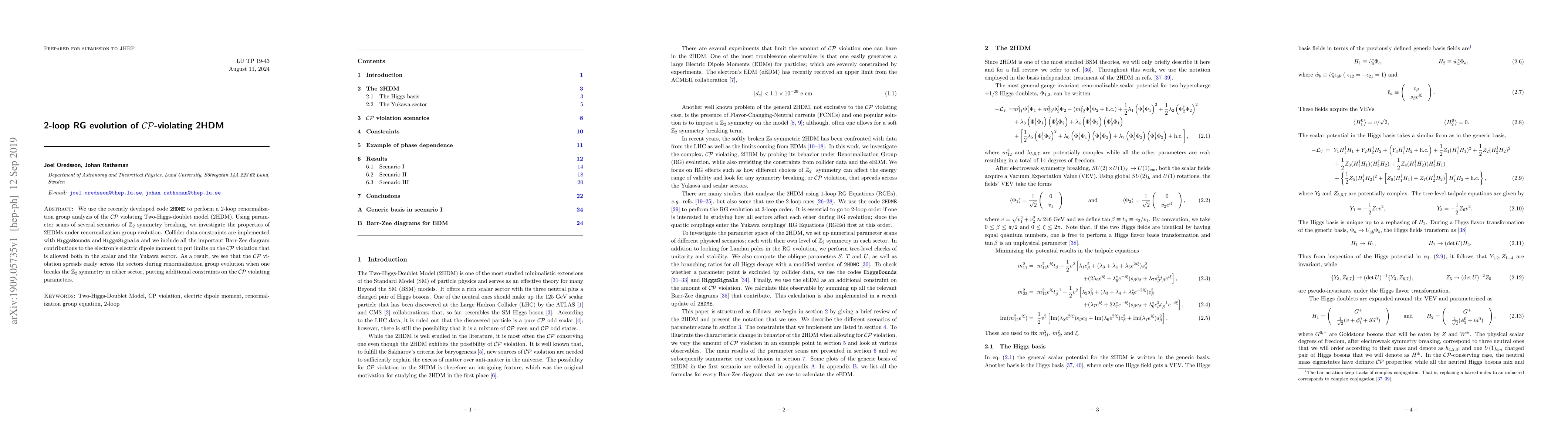 This paper employs the 2HDME code for a 2-loop renormalization group analysis of the CP-violating Two-Higgs-doublet Model (2HDM), exploring Z2 symmetry breaking scenarios. It finds that CP violation spreads across sectors during evolution, imposing additional constraints on the CP-violating parameters.