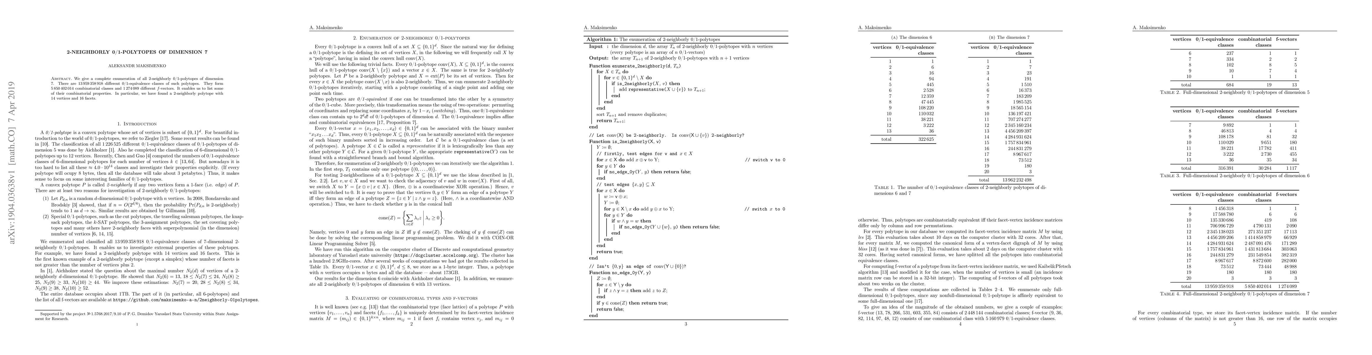 This paper enumerates all 2-neighborly 0/1-polytopes of dimension 7, revealing 13,959,358,918 equivalence classes, 5,850,402,014 combinatorial classes, and 1,274,089 distinct f-vectors, highlighting a specific polytope with 14 vertices and 16 facets.